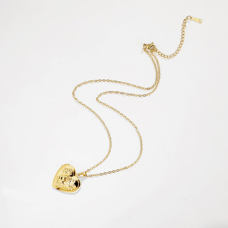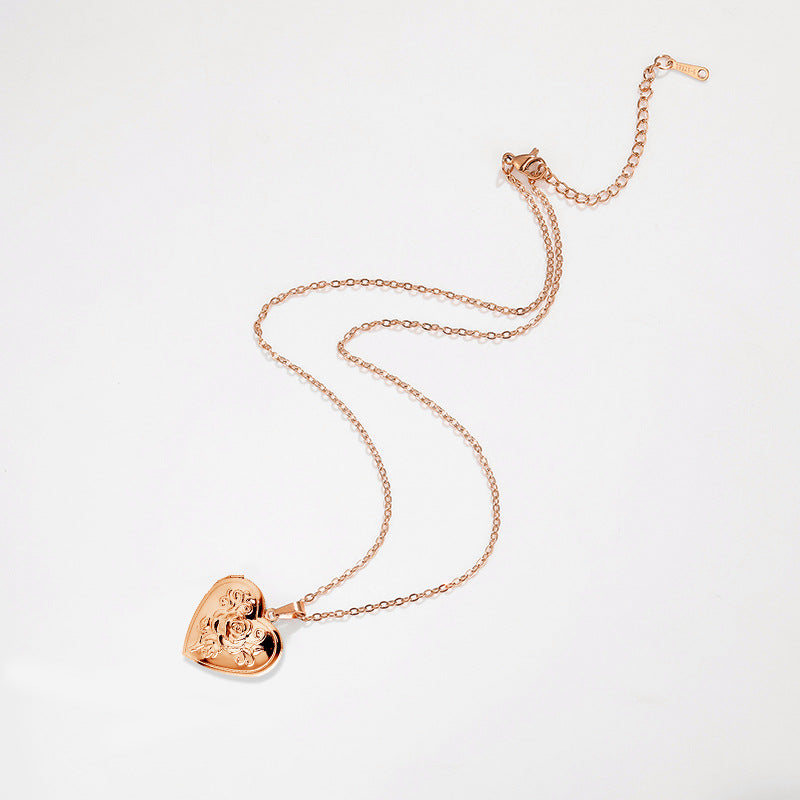 Printed Heart Rose Floating Locket DIY Photo Box Stainless Steel Pendant Necklace