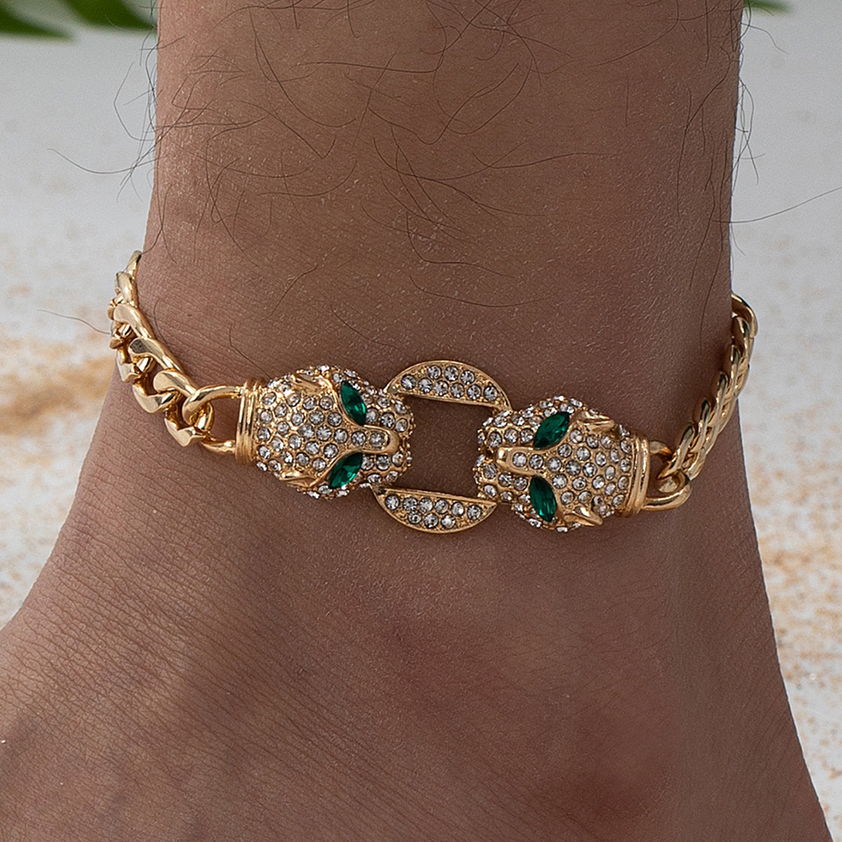 Punk Beach Modern Style Leopard Head Rhinestone Men's Anklet