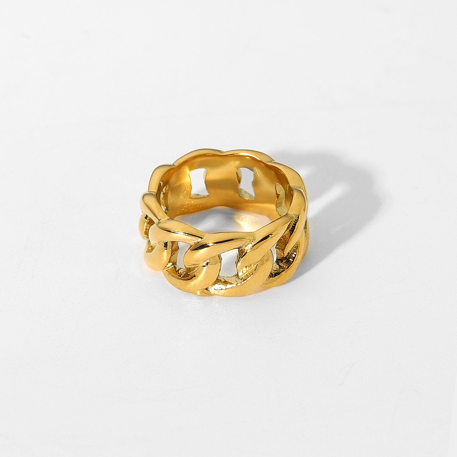 Punk Twist Titanium Steel Chain Ring - French Style Hollow Design Gold Plated Ring
