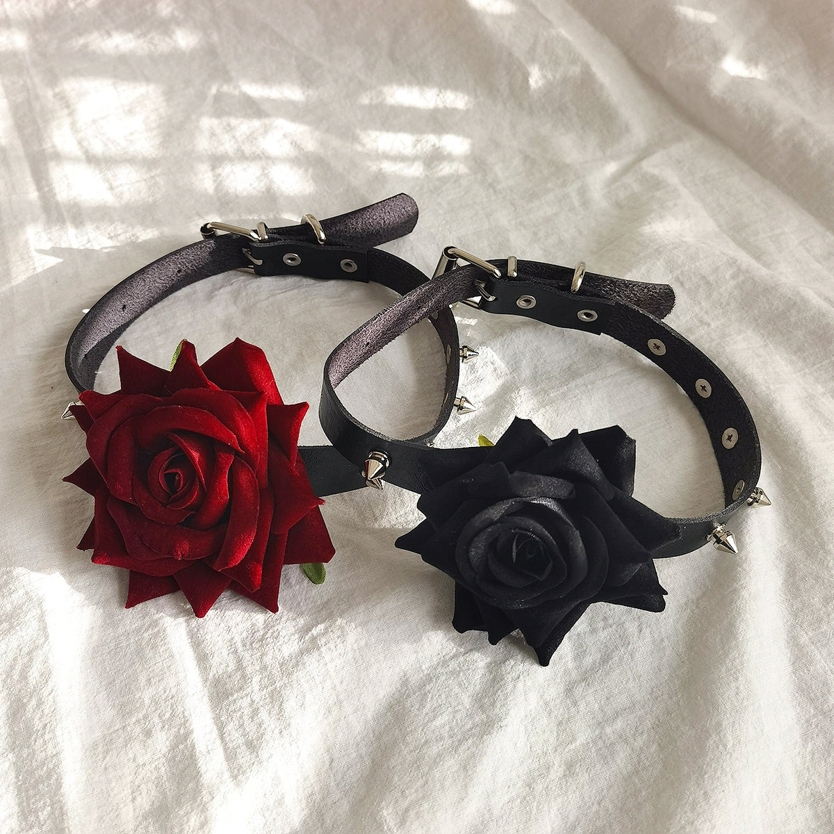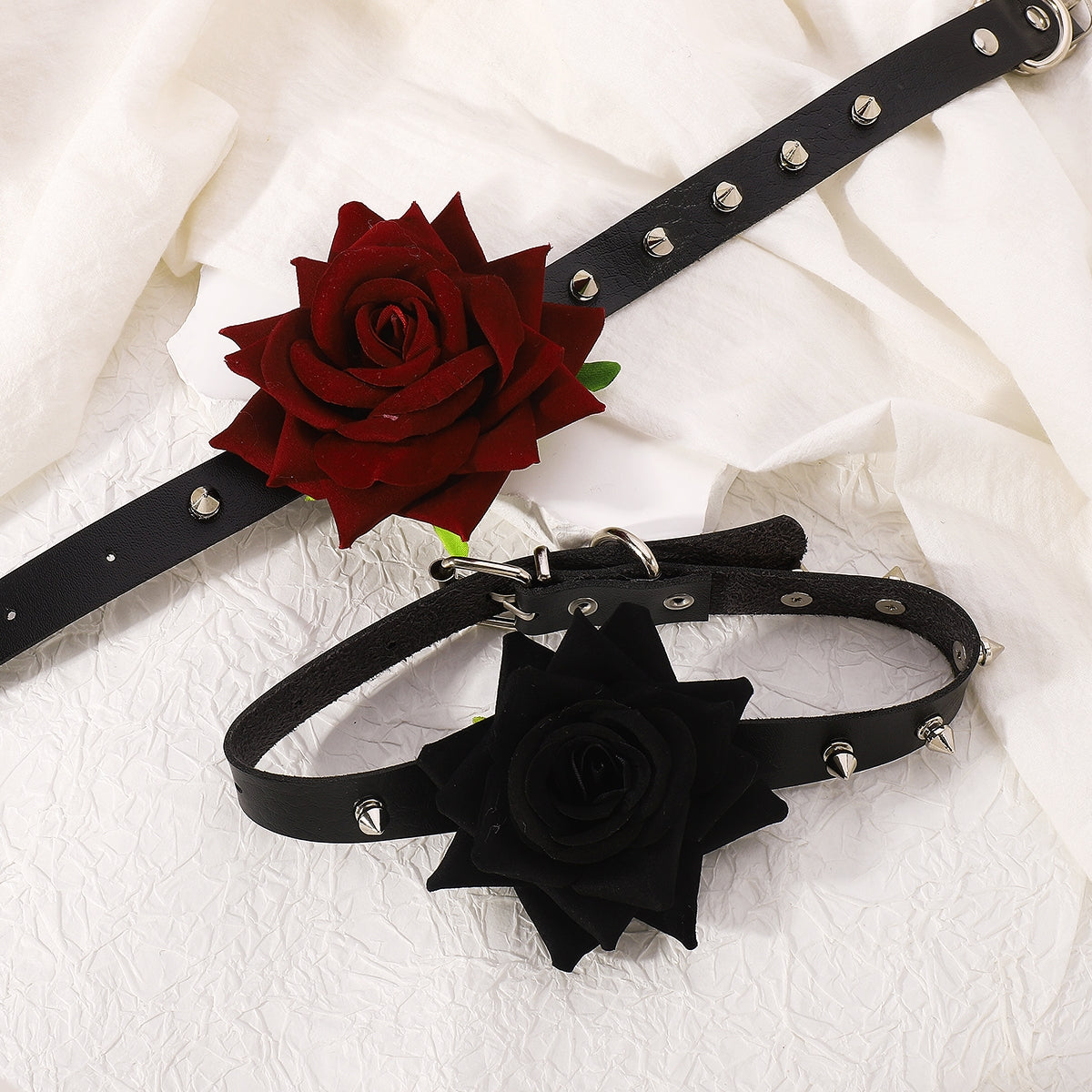 Punk Style Rose PU Leather Studded Choker Necklace for Women