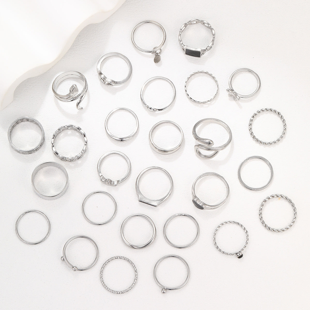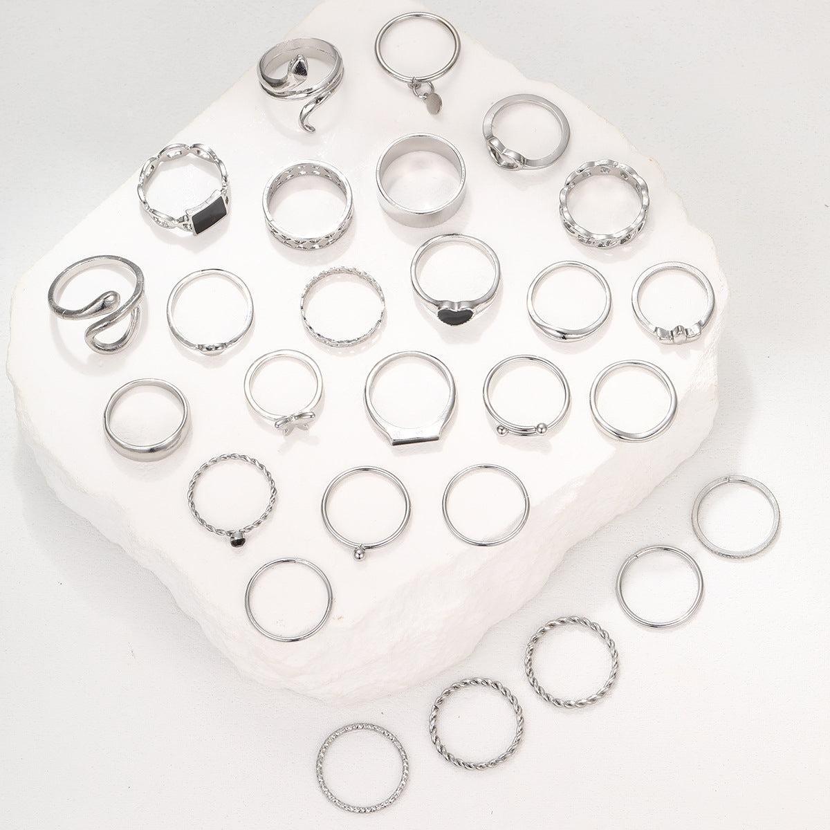 Punk Geometric Heart Snake Alloy Ring Set - 27 Pieces