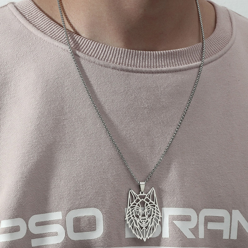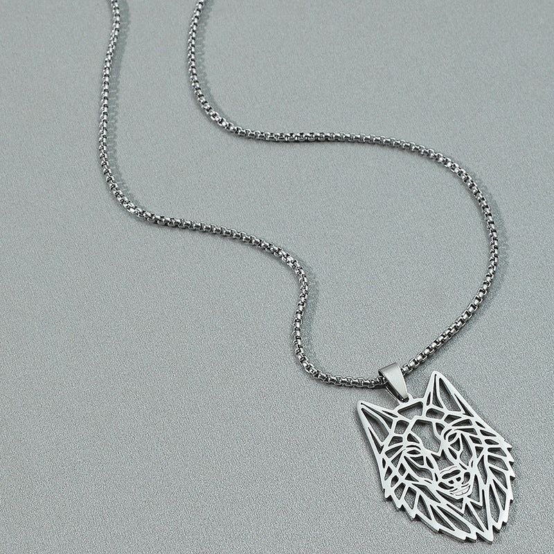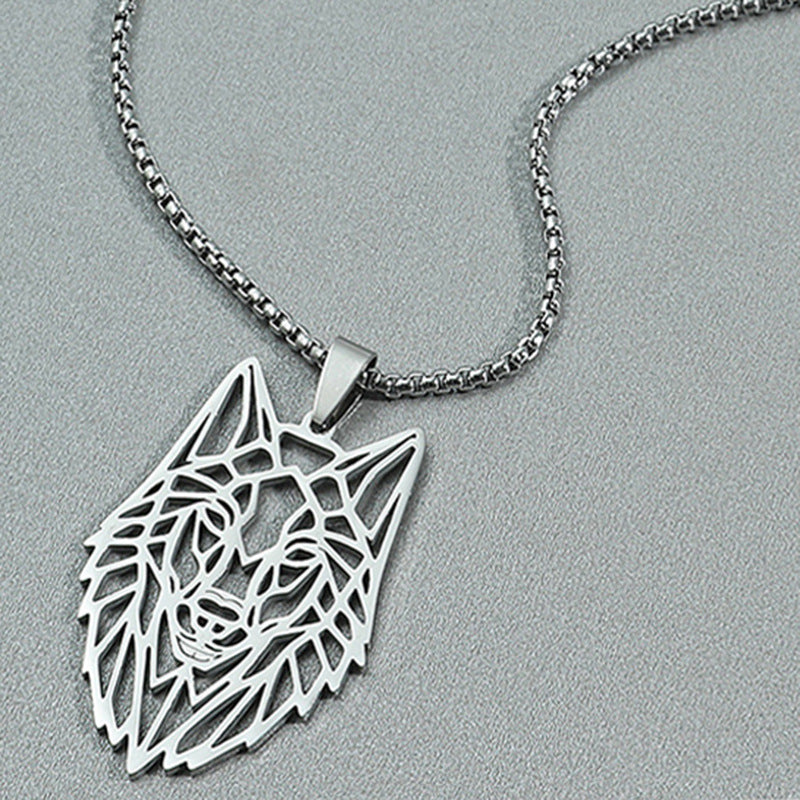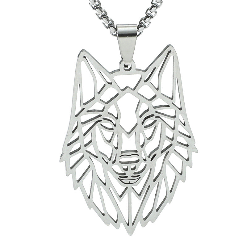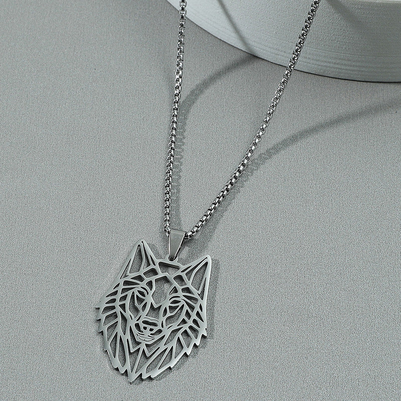 Punk Hollow Wolf Head Stainless Steel Men's Necklace