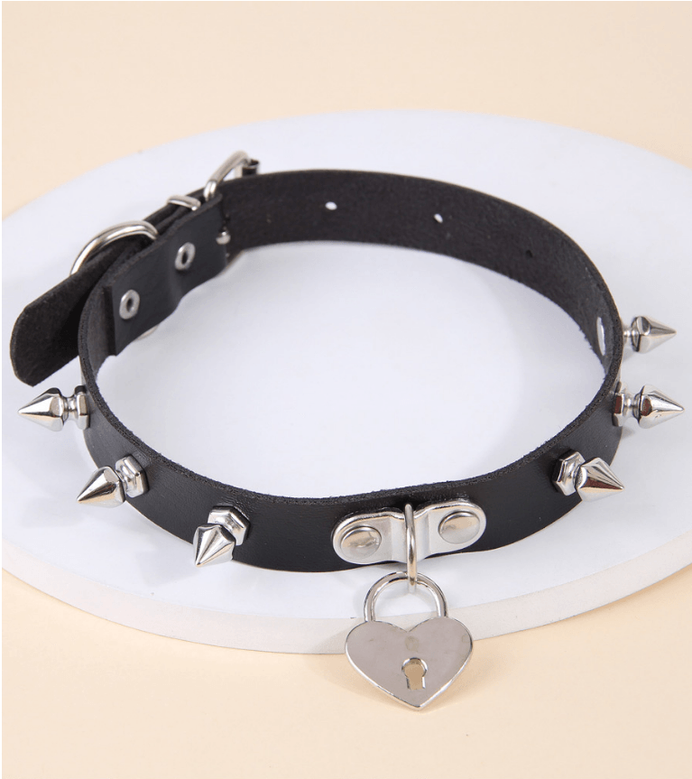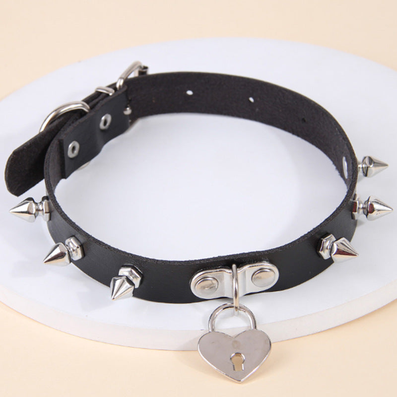 Punk Streetwear Heart Shape PU Leather Studded Women's Choker Necklace
