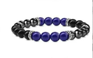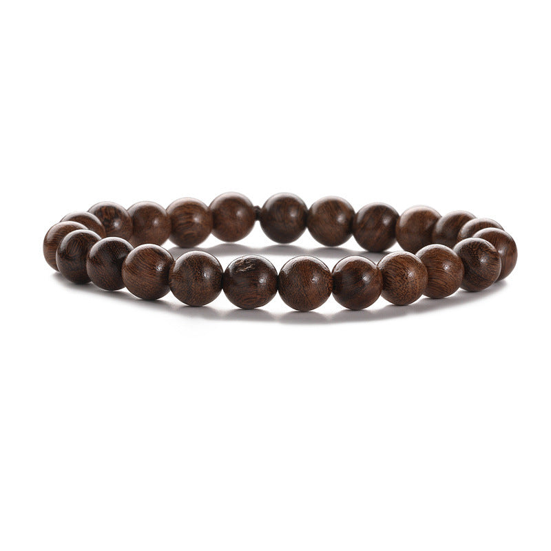Retro Classic Round Wood Agate Beaded Bracelet with 8mm Tiger Eye and Rainbow Beads