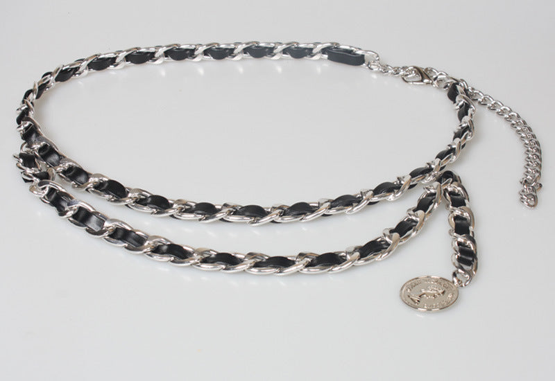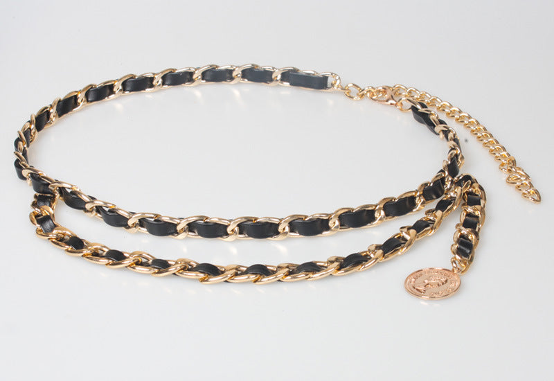 Retro Coin Pendant Braided Waist Chain for Dresses and Sweaters
