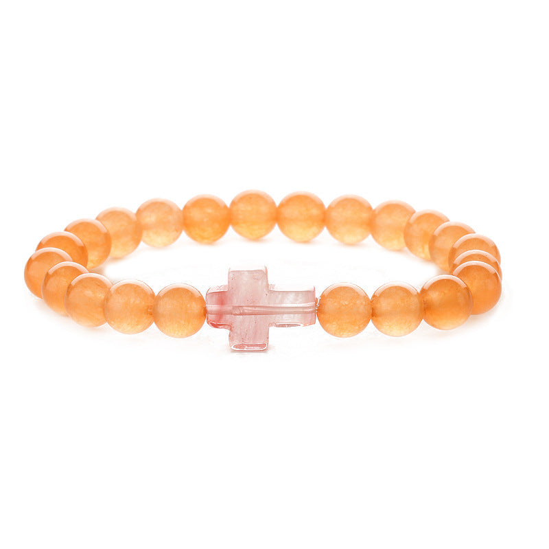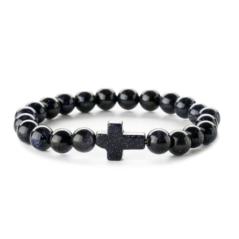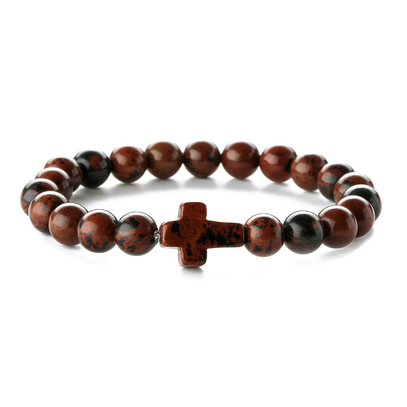 Retro Cross Agate Tiger Eye Volcanic Stone Beaded Bracelet Set