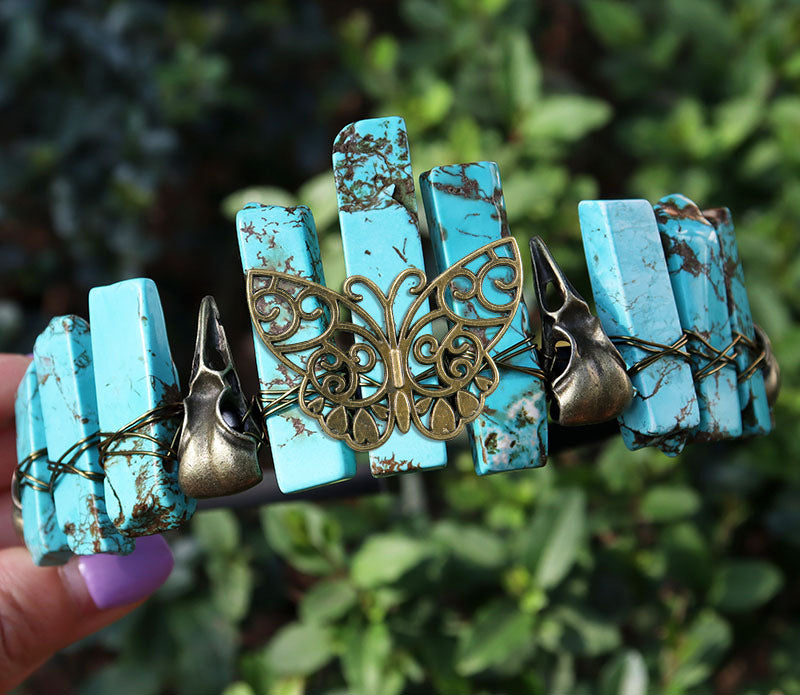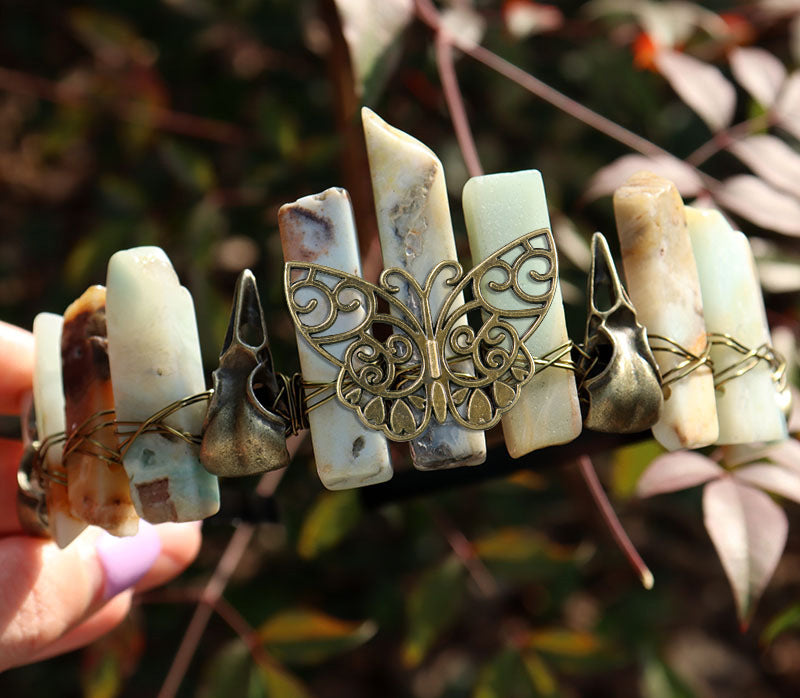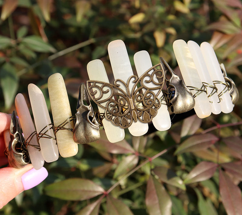 Retro Bronze Viking Raven Butterfly Crystal Hairband