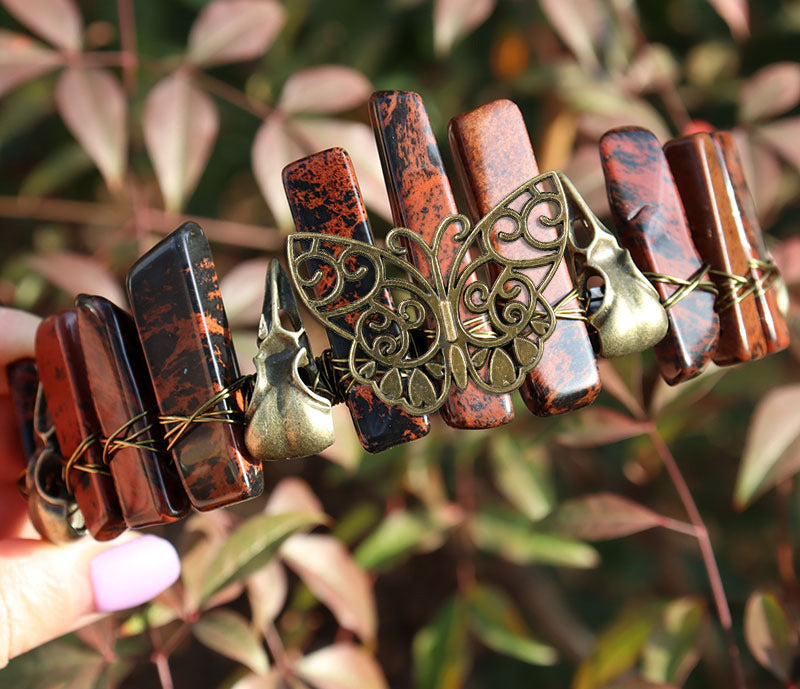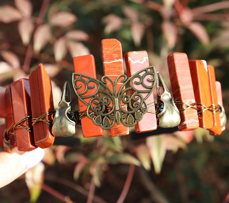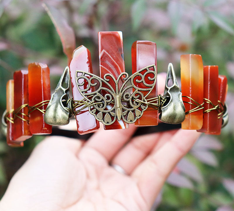 Red agate, ancient green crow, butterfly, black headband + ancient bronze line