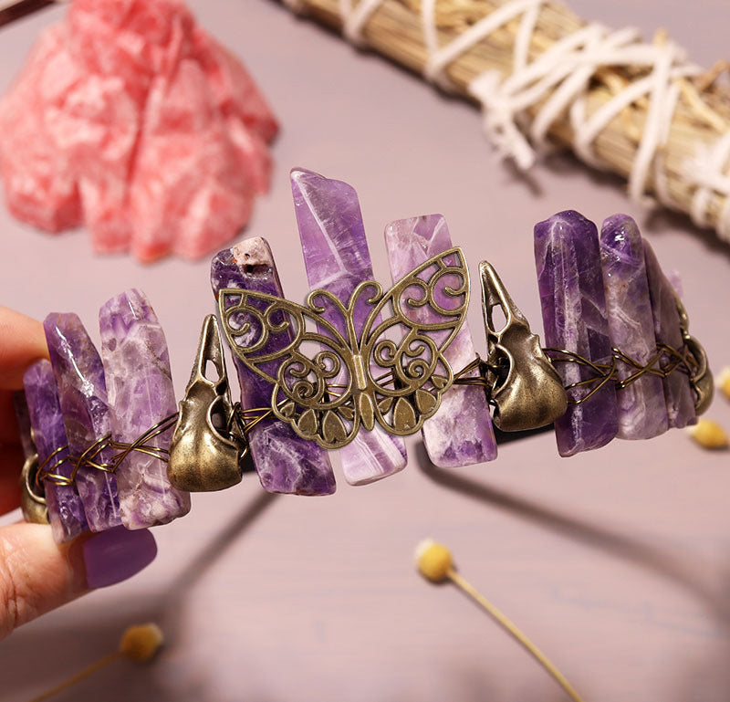 Light amethyst ancient green crow butterfly black headband + ancient bronze line