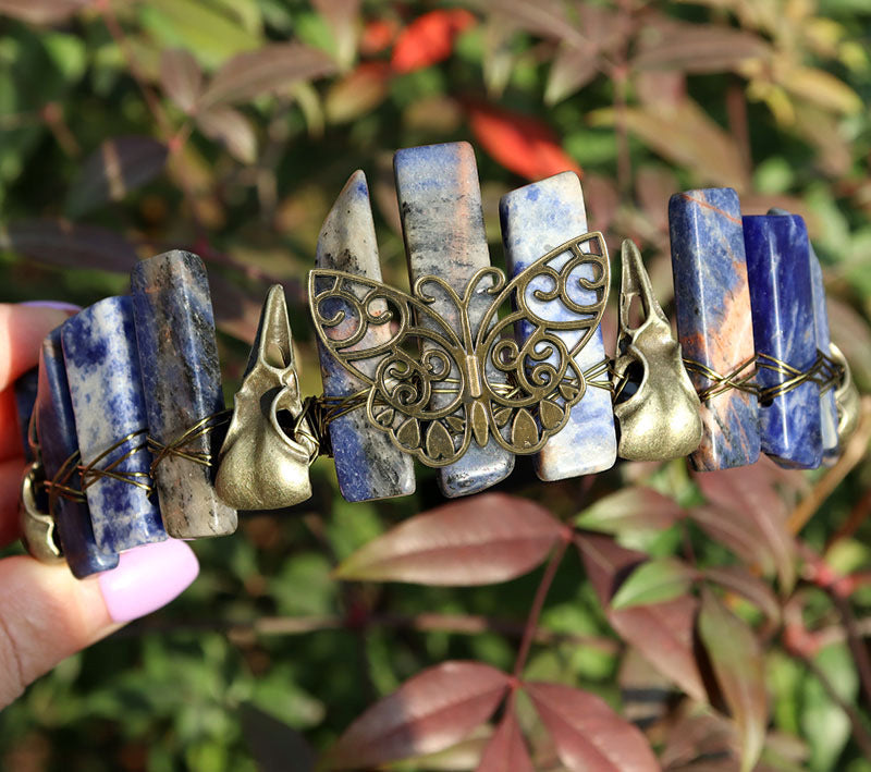 Lapis lazuli ancient green crow butterfly black headband + ancient bronze line