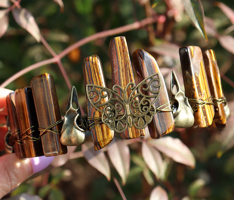 Tiger's Eye, Ancient Green Crow, Butterfly, Black Headband + Ancient Bronze Line