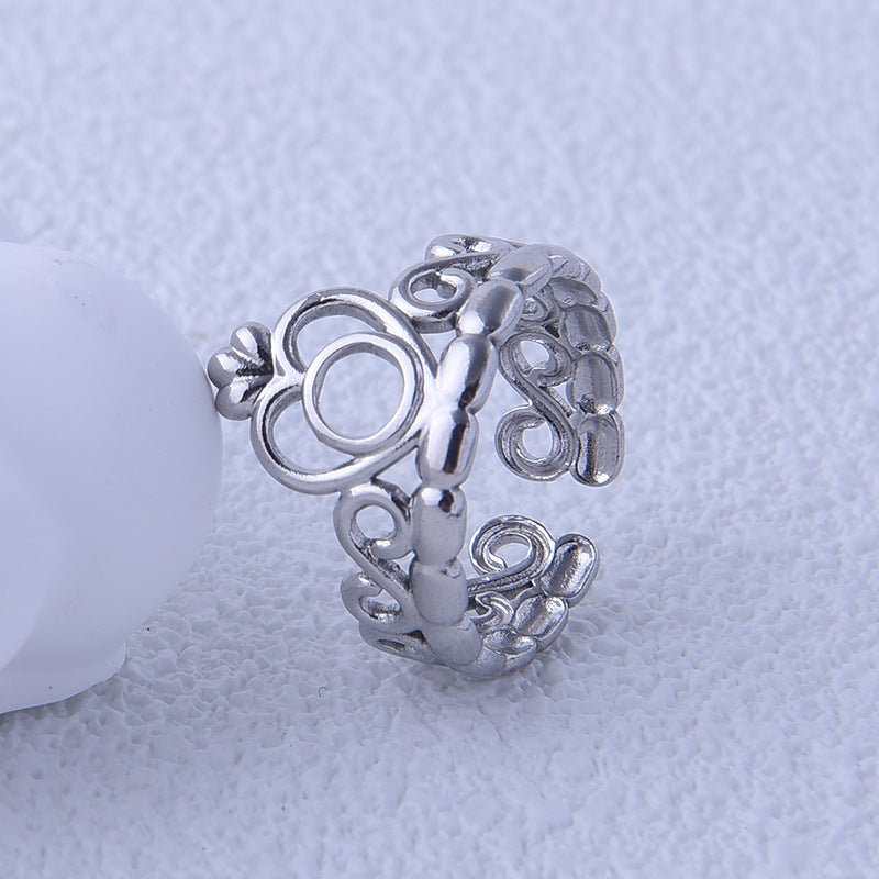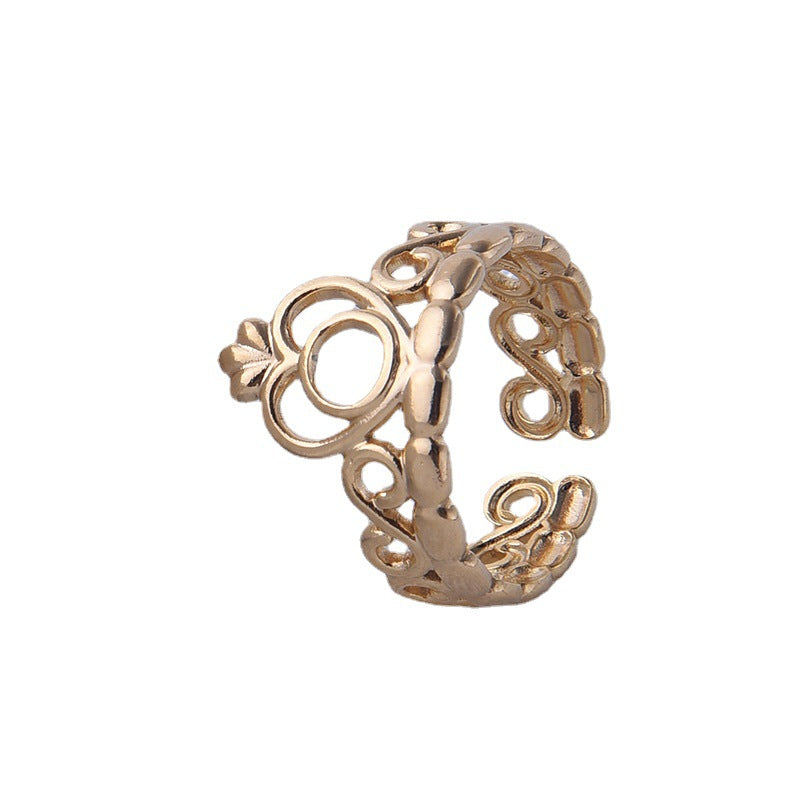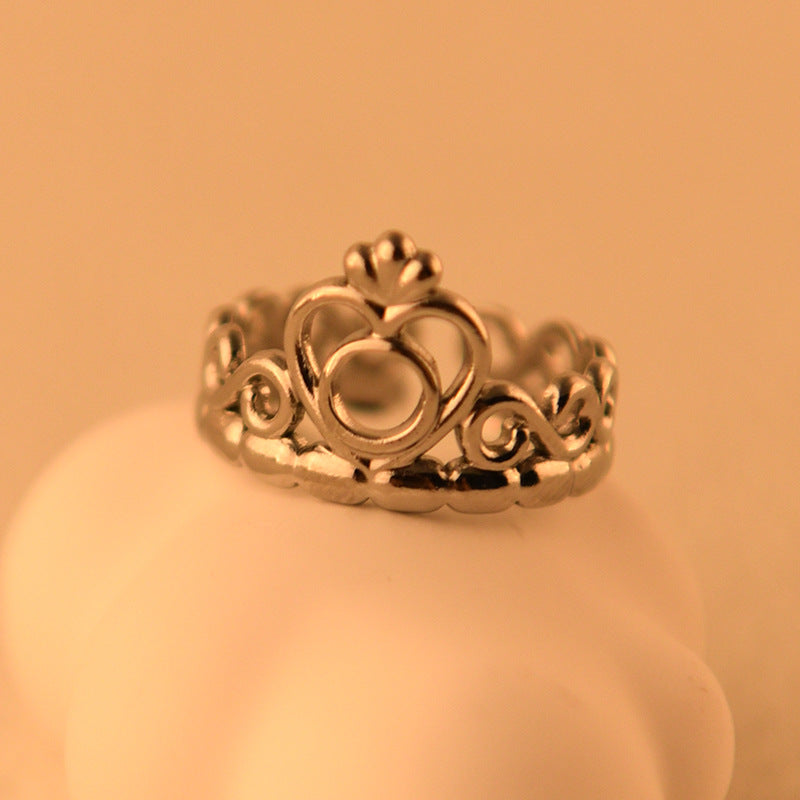 Retro Crown Titanium Steel Open Ring - 18K Gold Plated Fashion Statement Ring