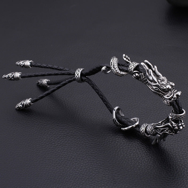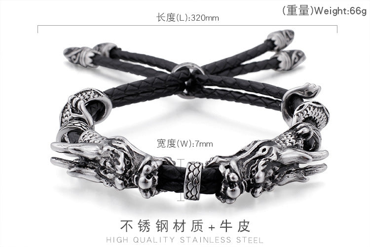 Retro Dragon Head Stainless Steel Leather Men's Adjustable Bracelet