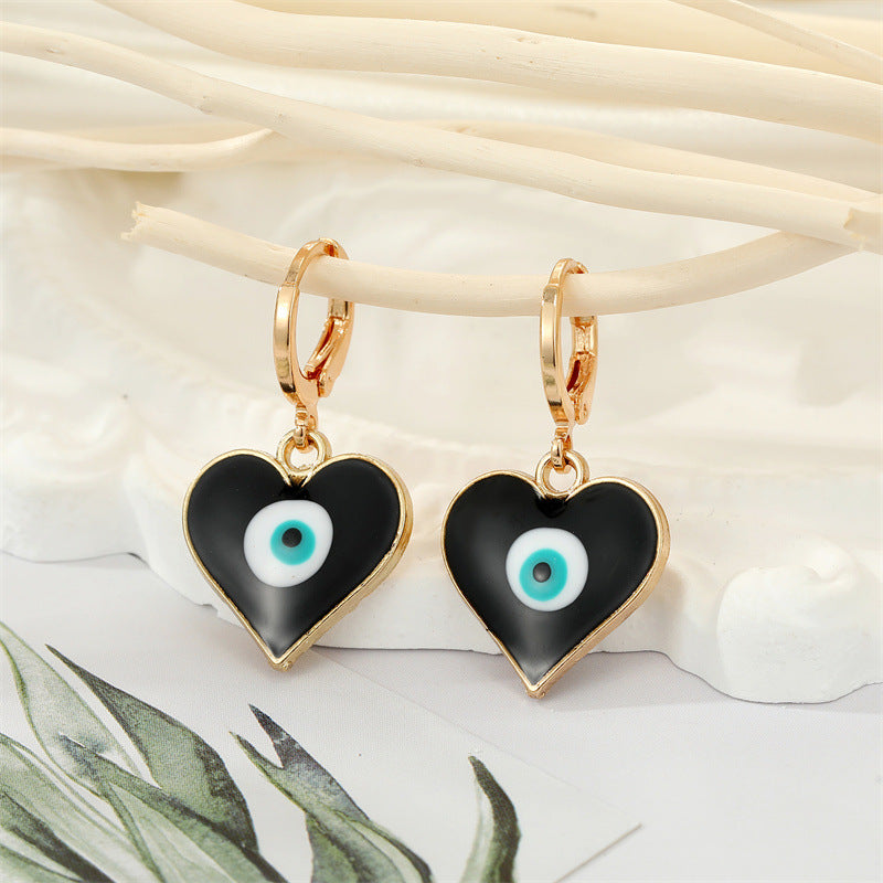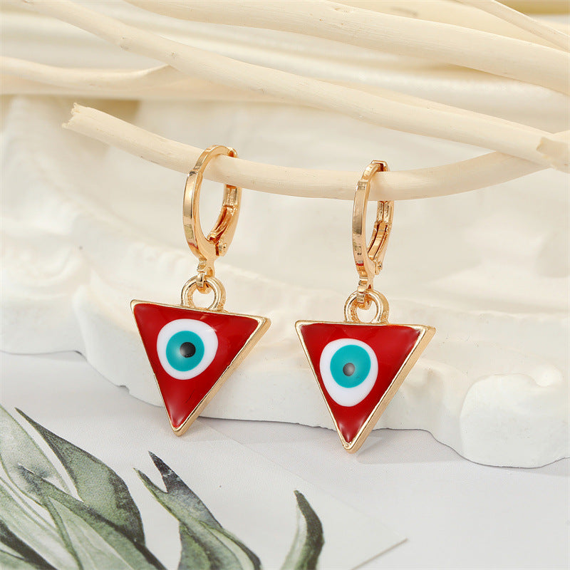 Retro Ethnic Triangle Heart Evil Eye Earrings