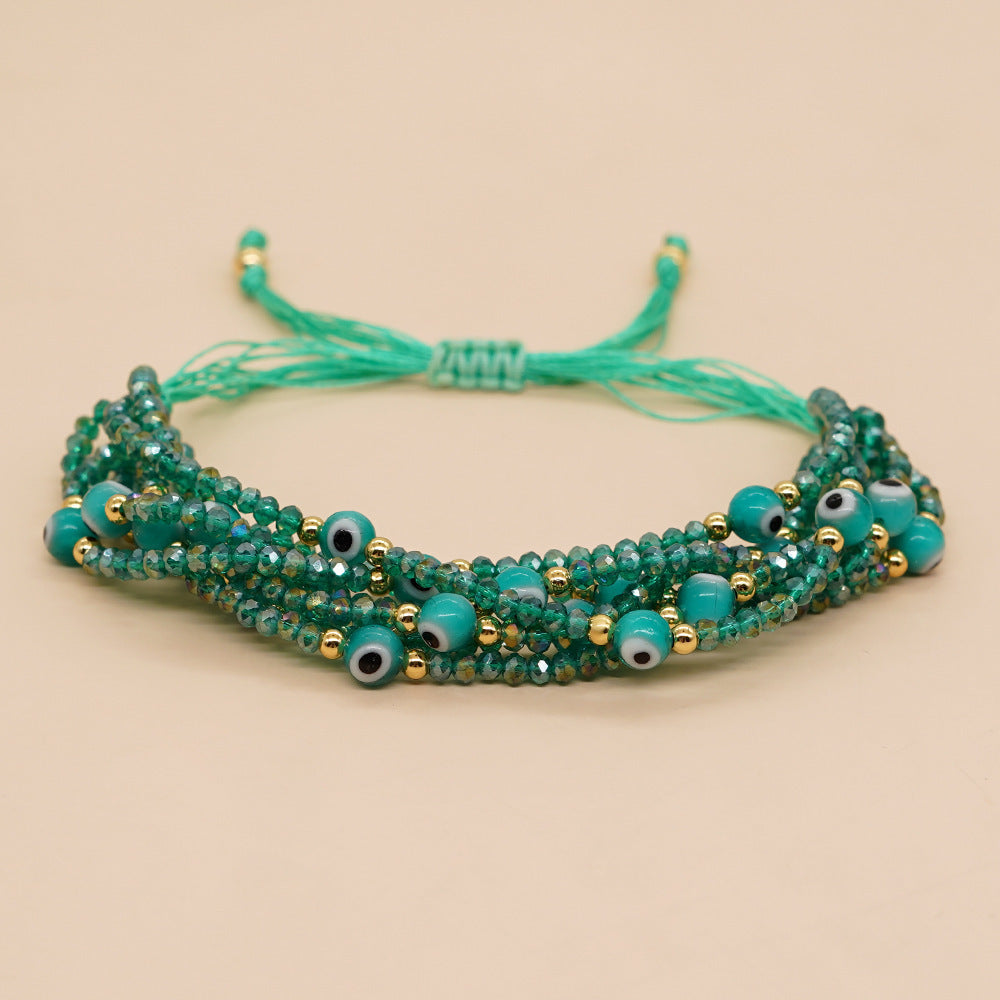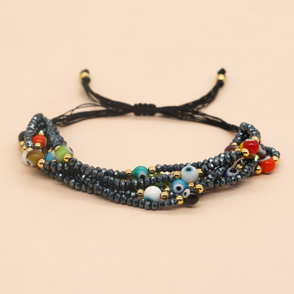 Retro Ethnic Multi-Layer Evil Eye Crystal Glass Beaded Bracelet