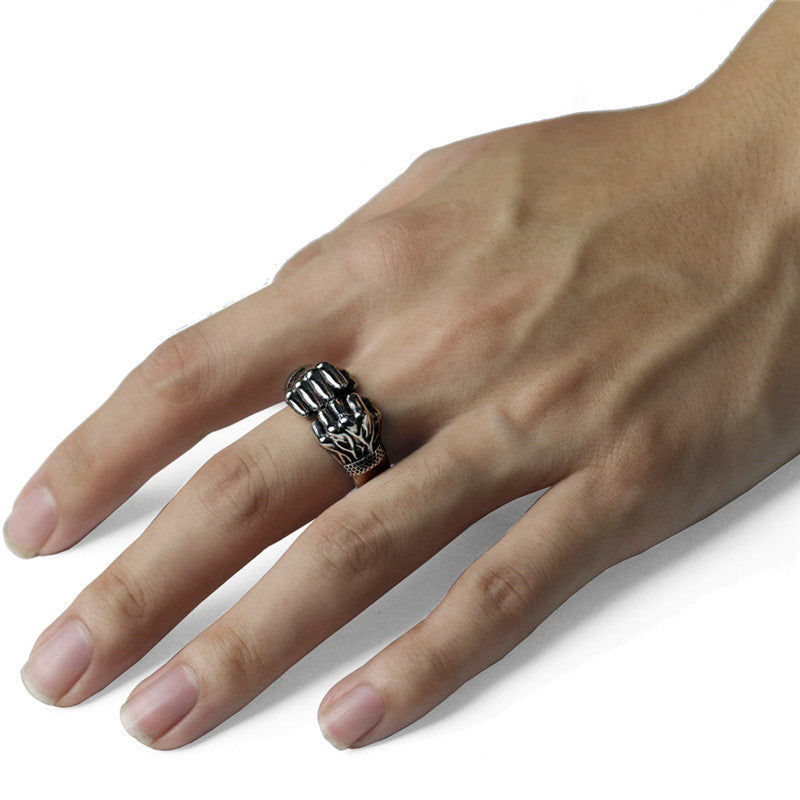 Retro Fashion Adjustable Double Fist Clasp Punk Ring for Men and Women