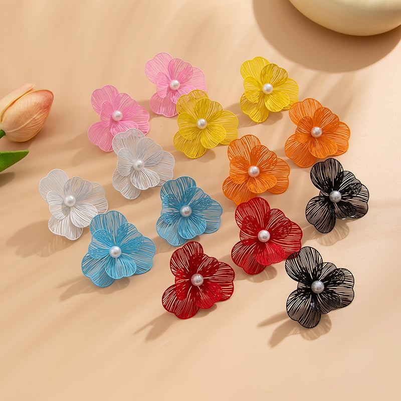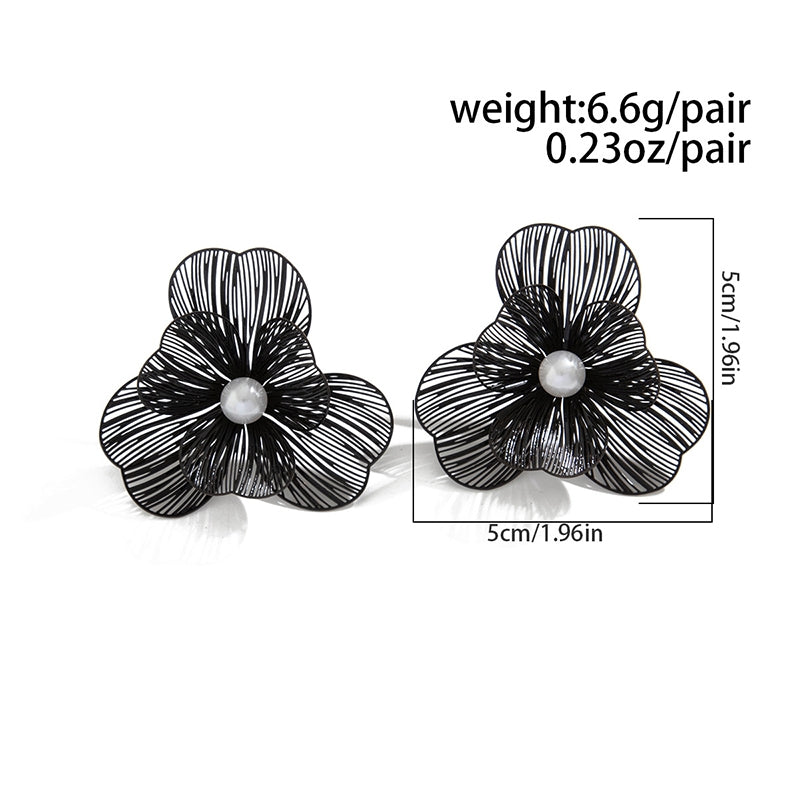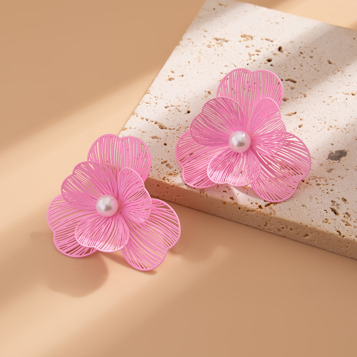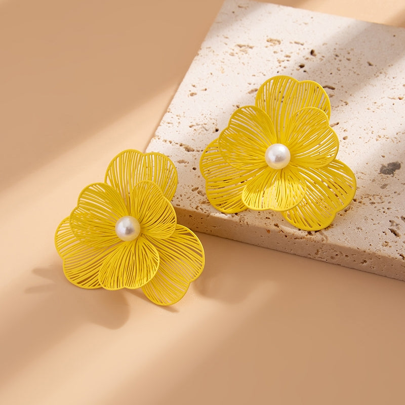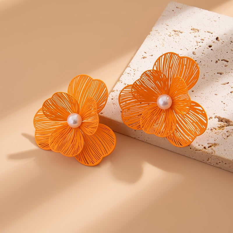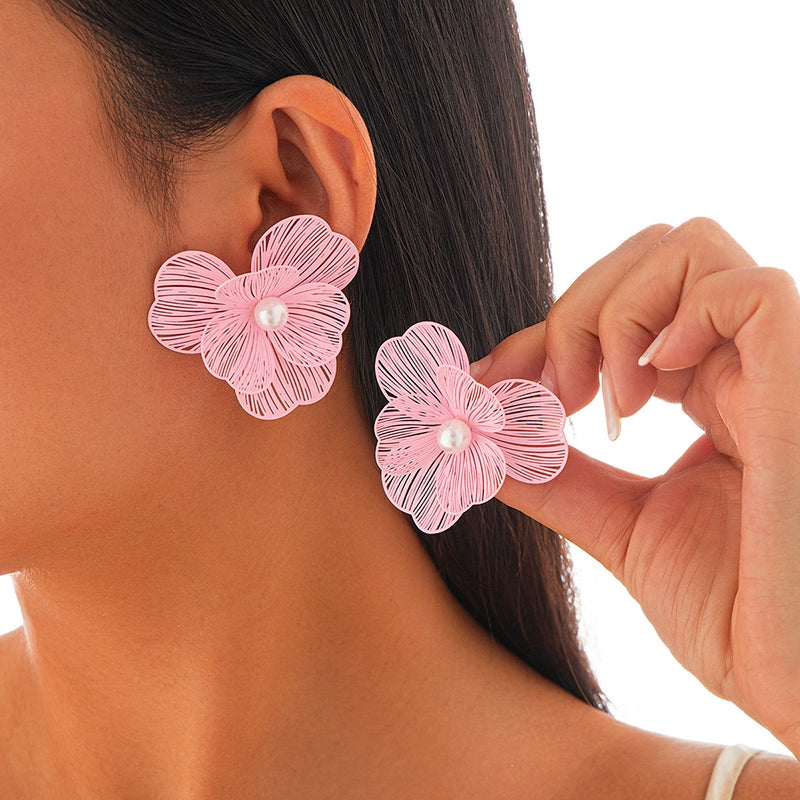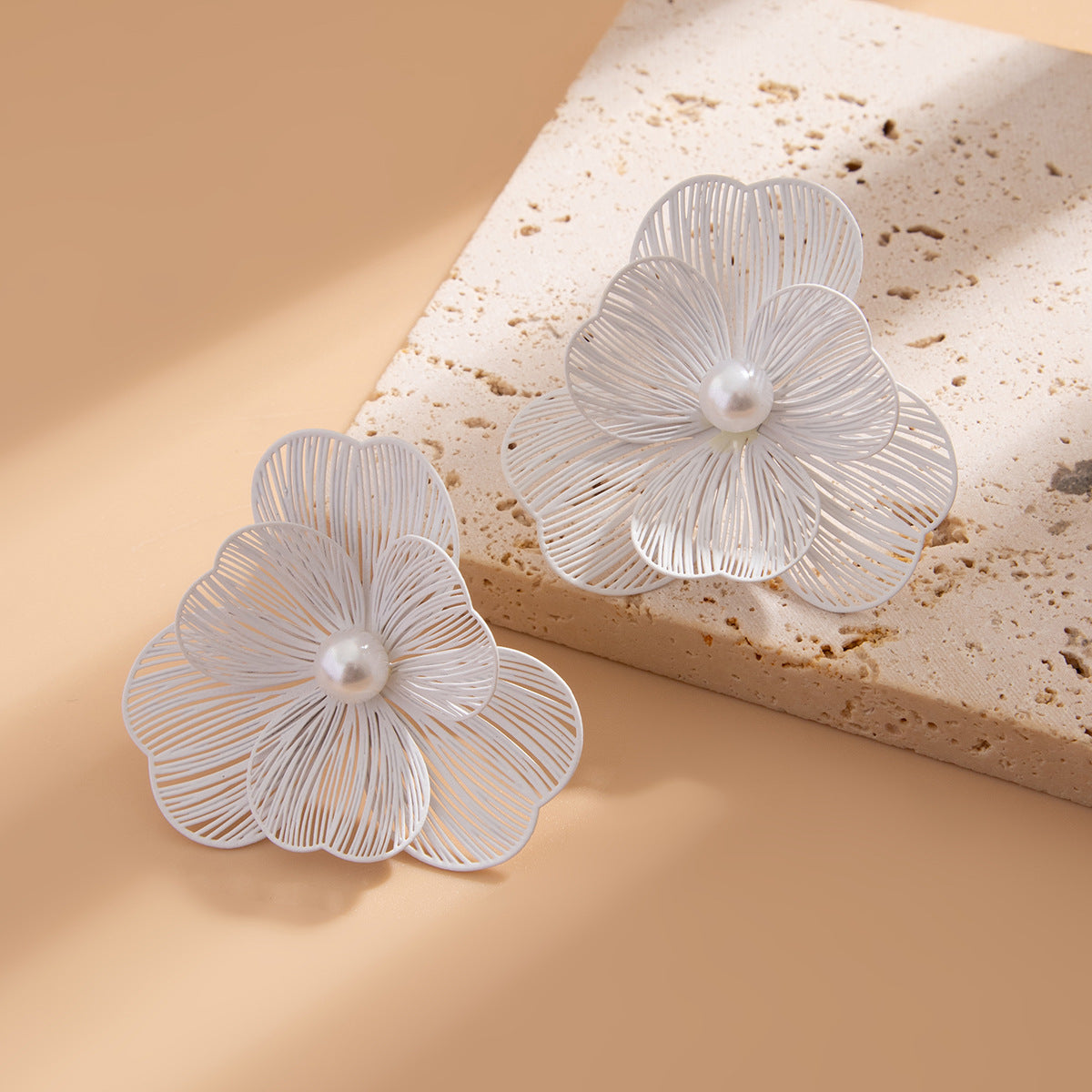 Retro Flower Alloy Copper Stud Earrings with Imitation Pearl - European Pastoral Style