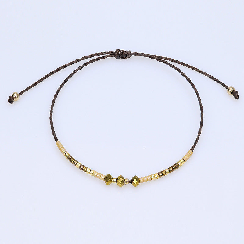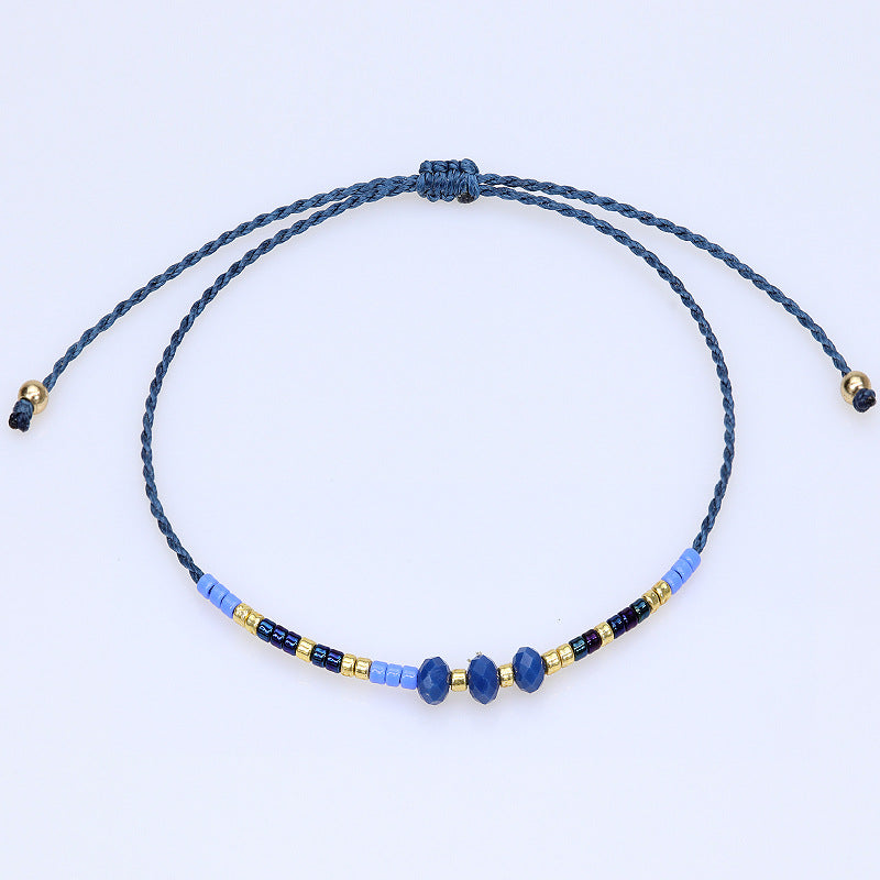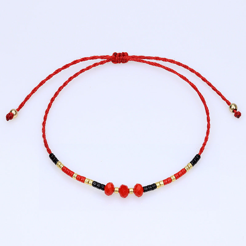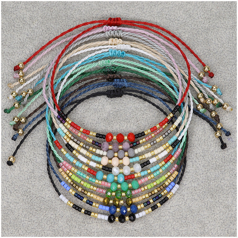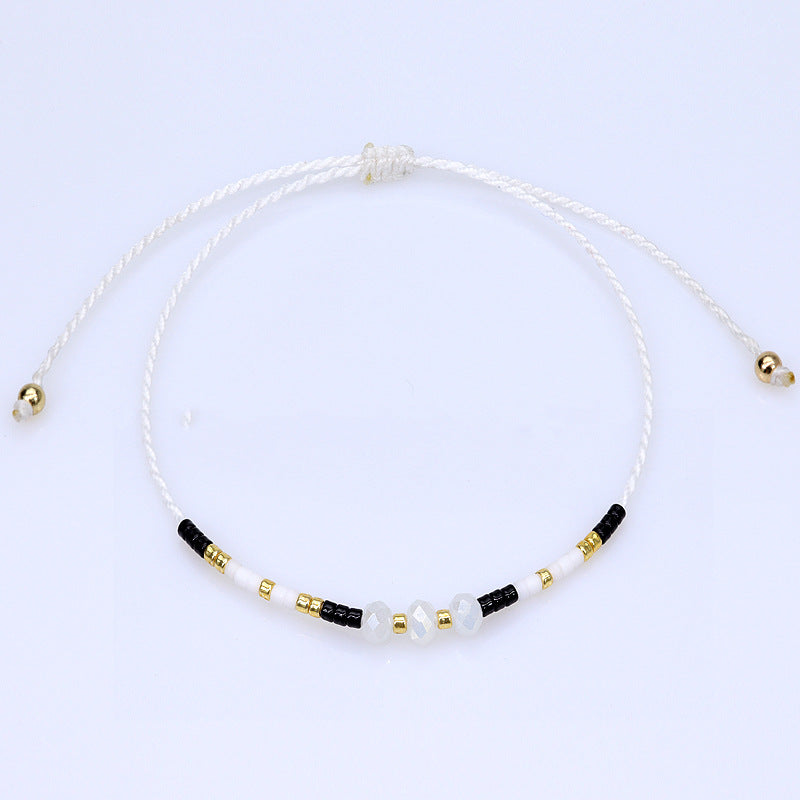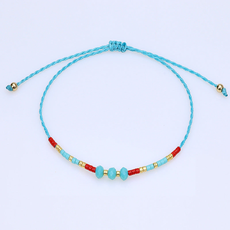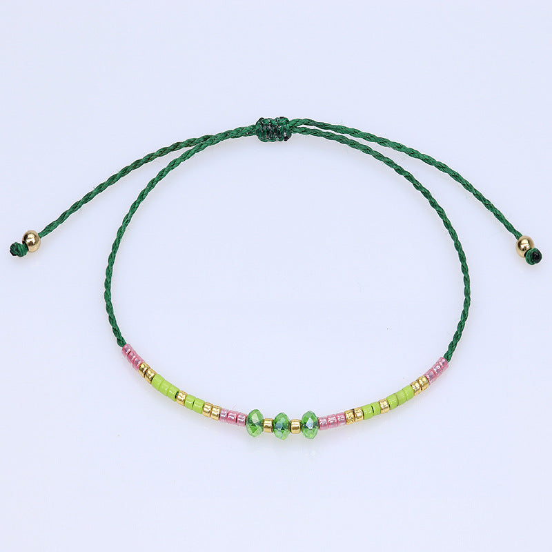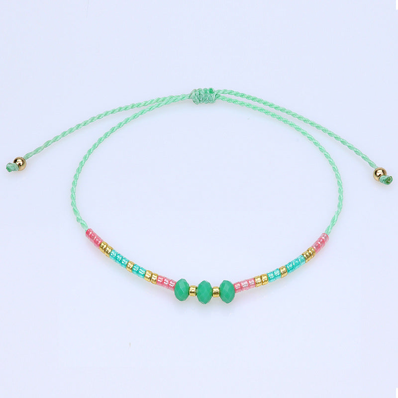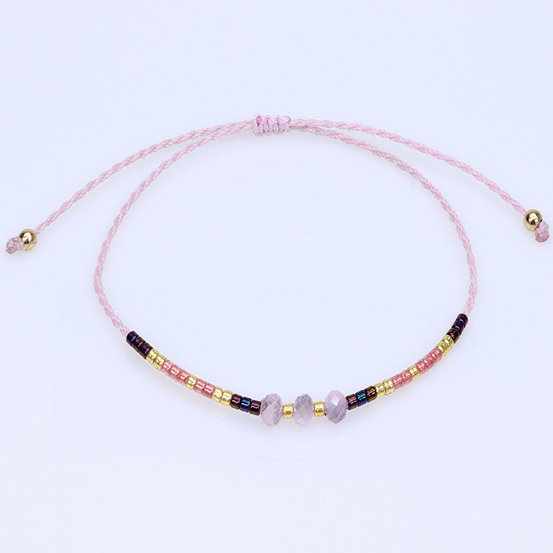 Retro Geometric Crystal Seed Bead Handmade Rope Bracelet