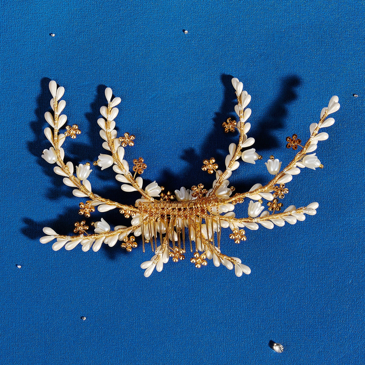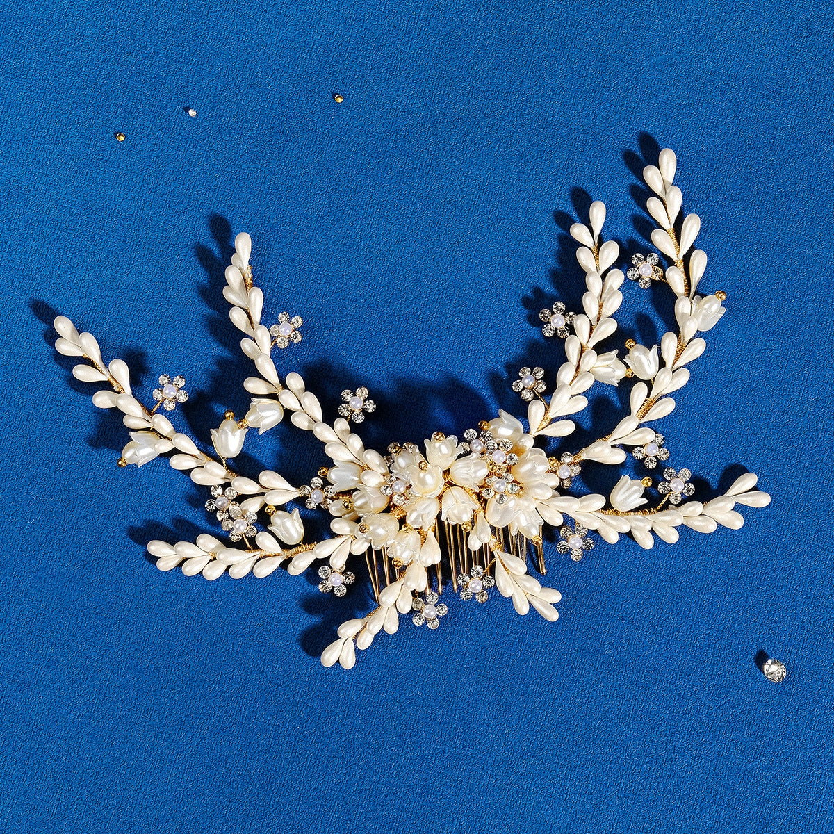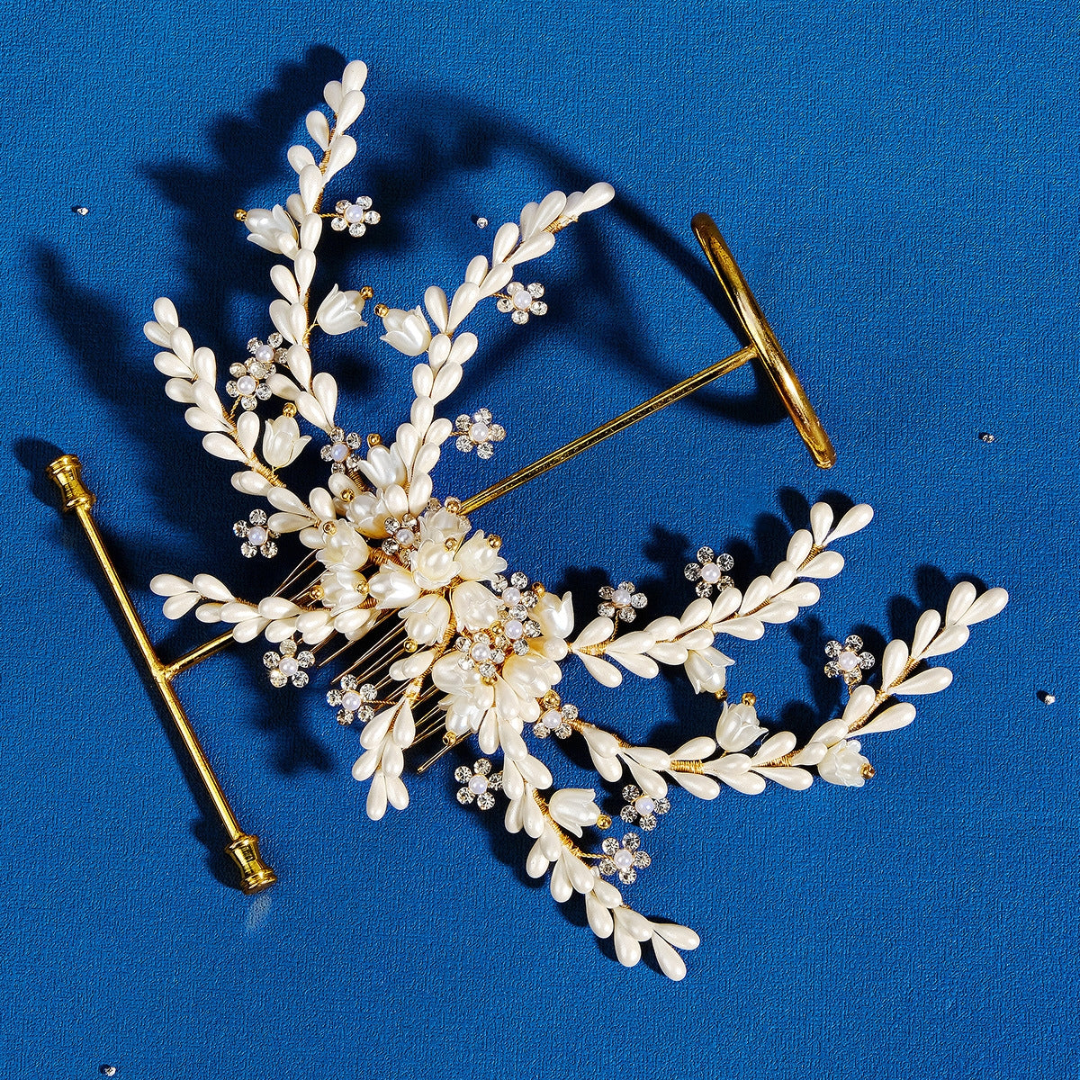 Retro Geometric Pearl Rhinestone Bridal Hair Comb