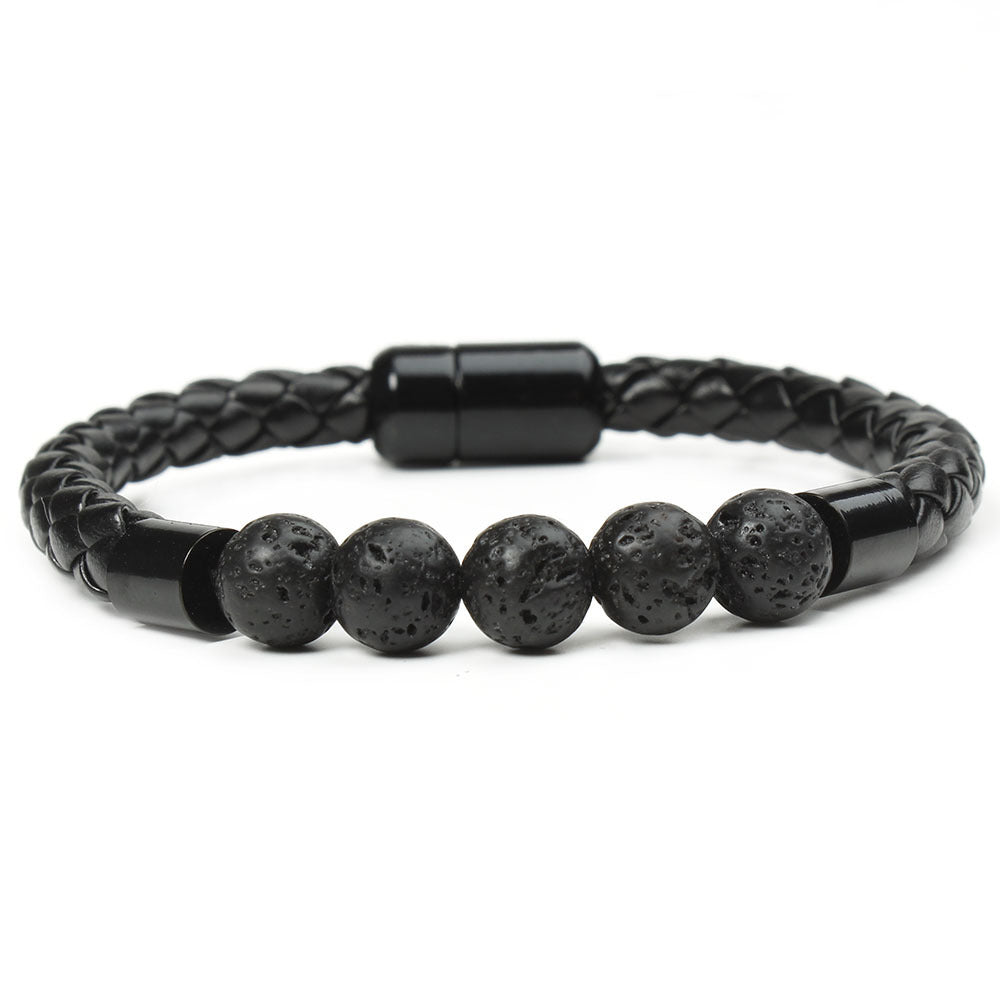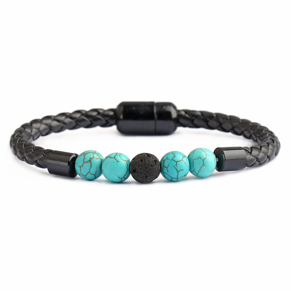 Retro Geometric Tiger Eye Stone Beaded Leather Bracelet