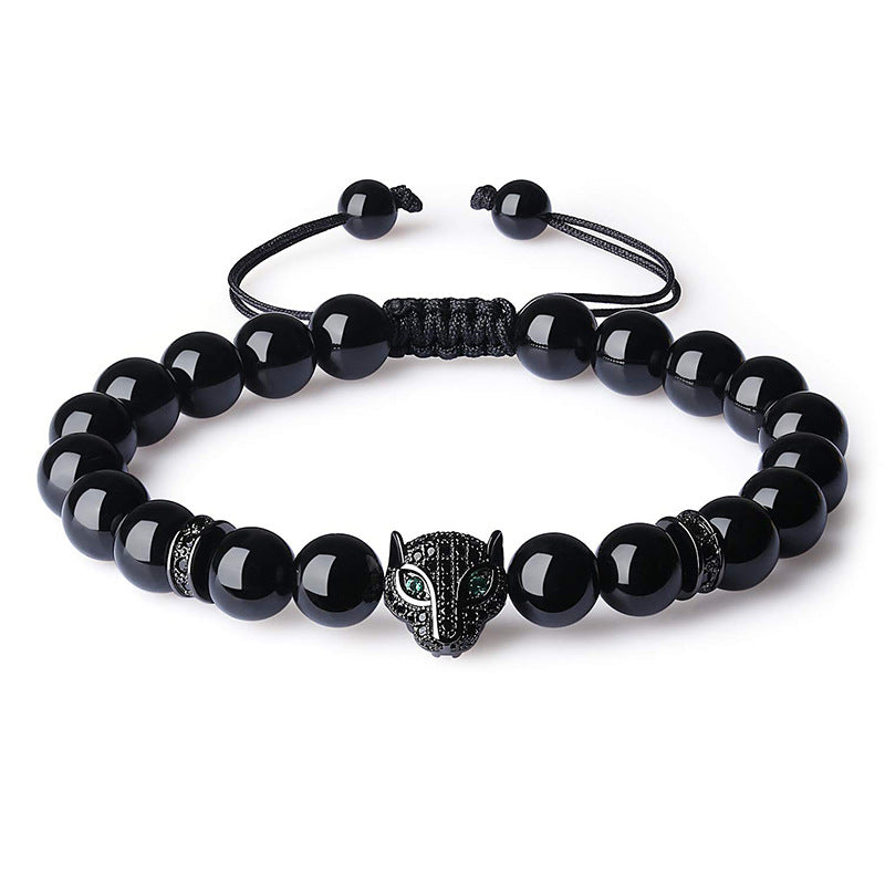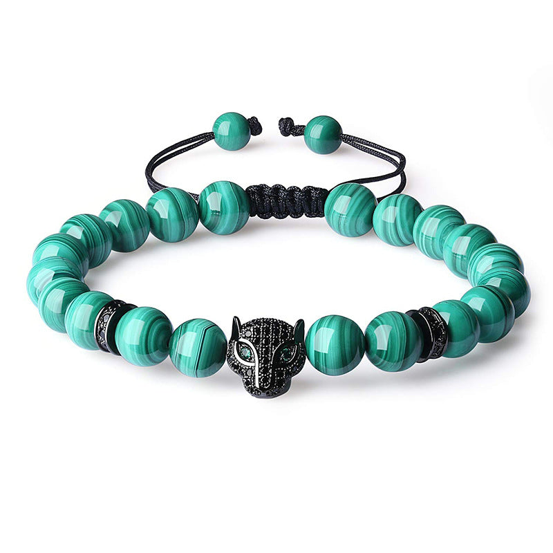 Retro Geometric Lapis Lazuli and Malachite Men's Bracelet with Zircon Detailing