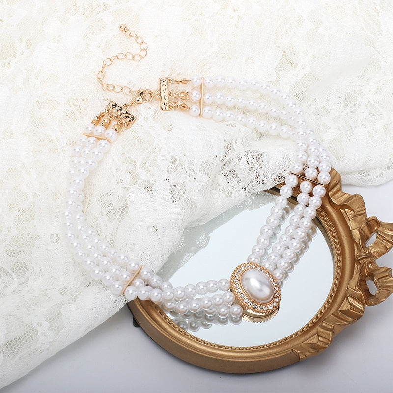 Retro Geometric Oval Pearl Layered Choker Necklace
