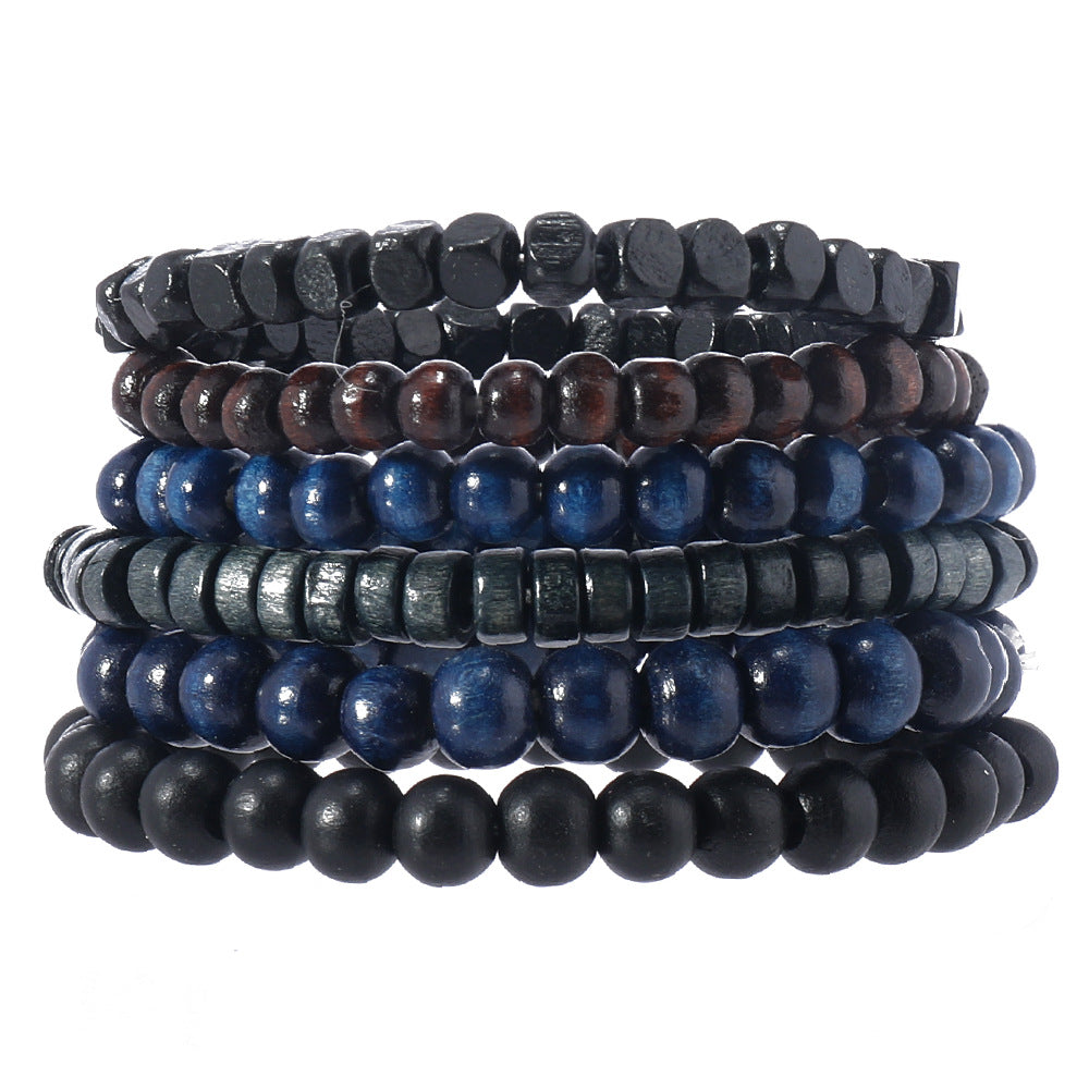 Retro Multicolor Geometric Wood Beaded Layered Unisex Bracelet Set