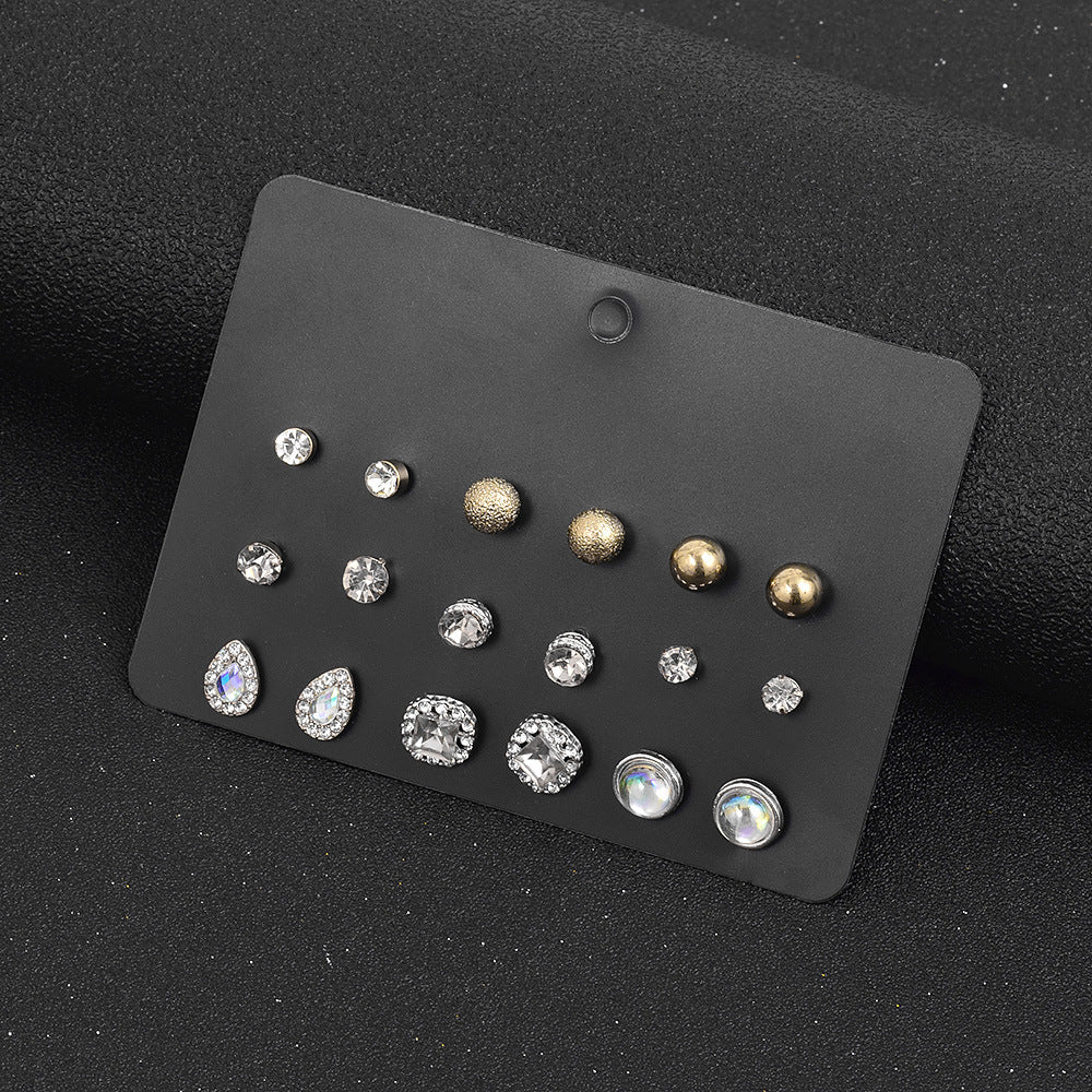 Retro Gold Earrings Set - 9 Pairs Minimalist Vintage Studs Collection