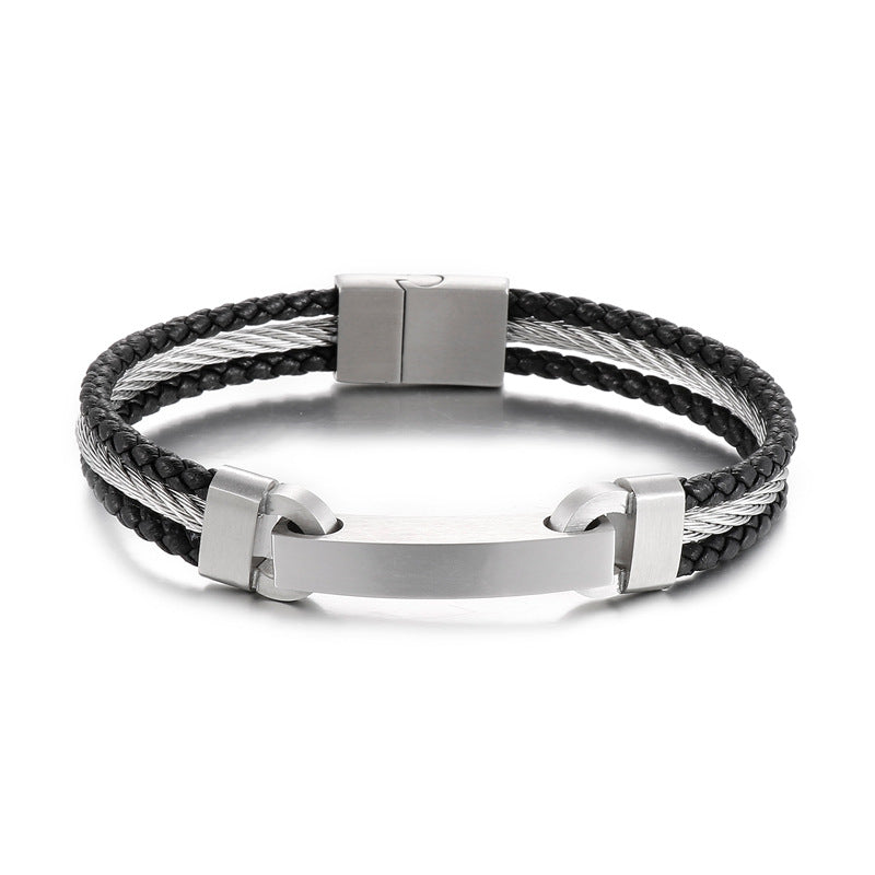 Retro Hexagon Stainless Steel Cowhide 18K Gold Plated Men's Bracelet