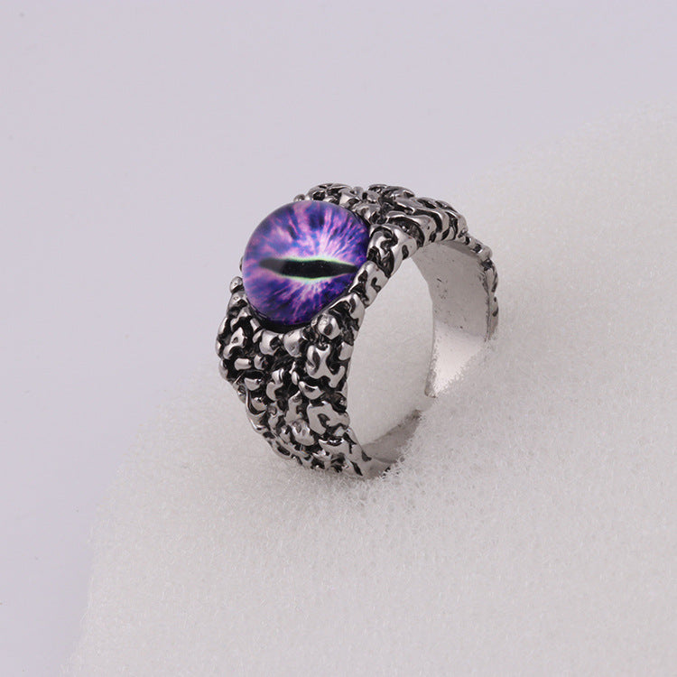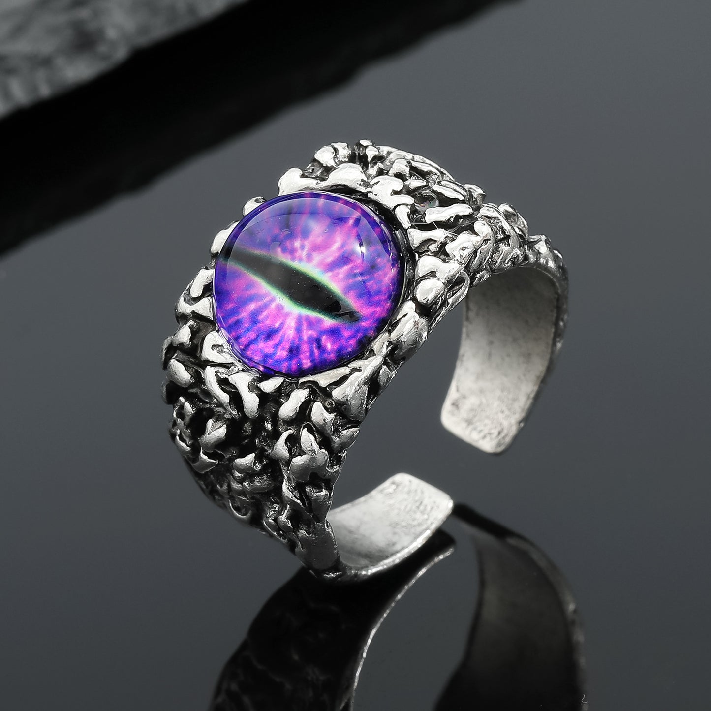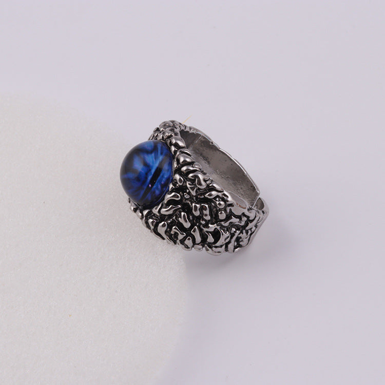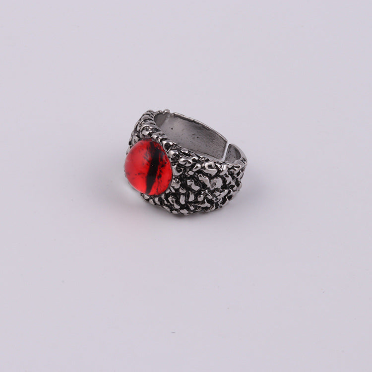 Retro Silver Eye Skull Punk Ring - Adjustable Alloy Design