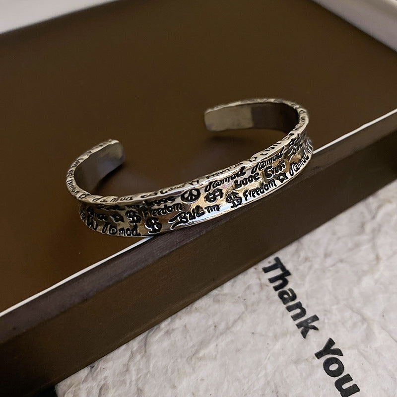 Retro Punk Geometric Letter Alloy Open Cuff Bracelet