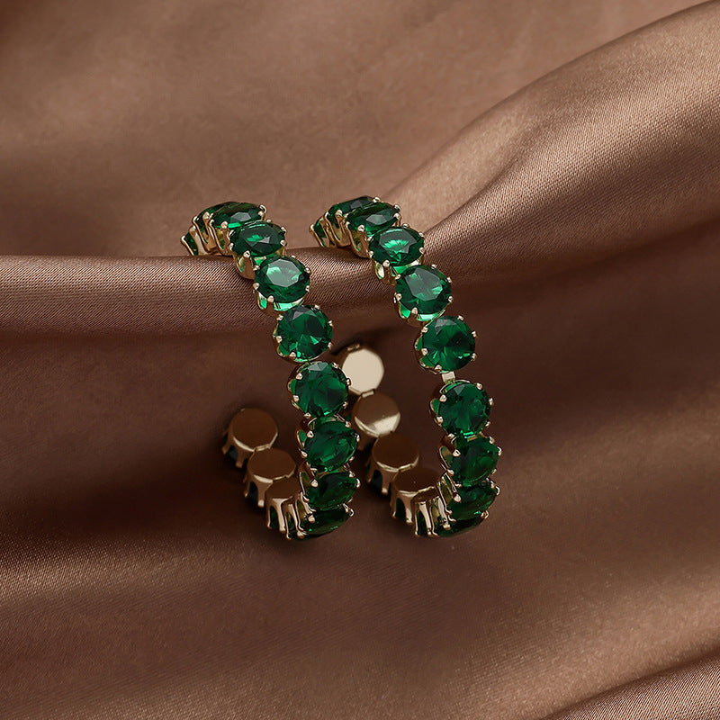 Retro Rhinestone Geometric Hoop Earrings 925 Silver Needle Luxury Statement Jewelry