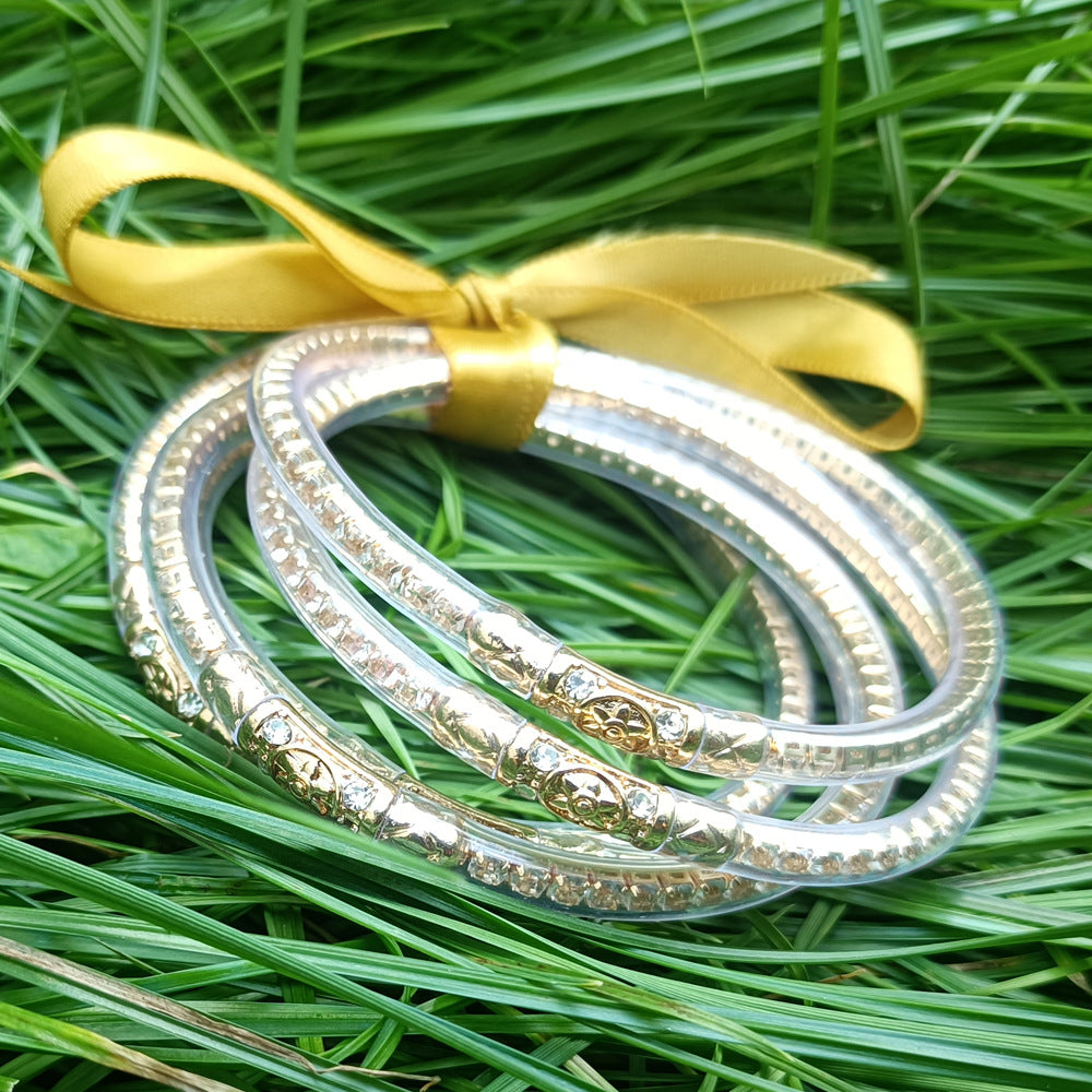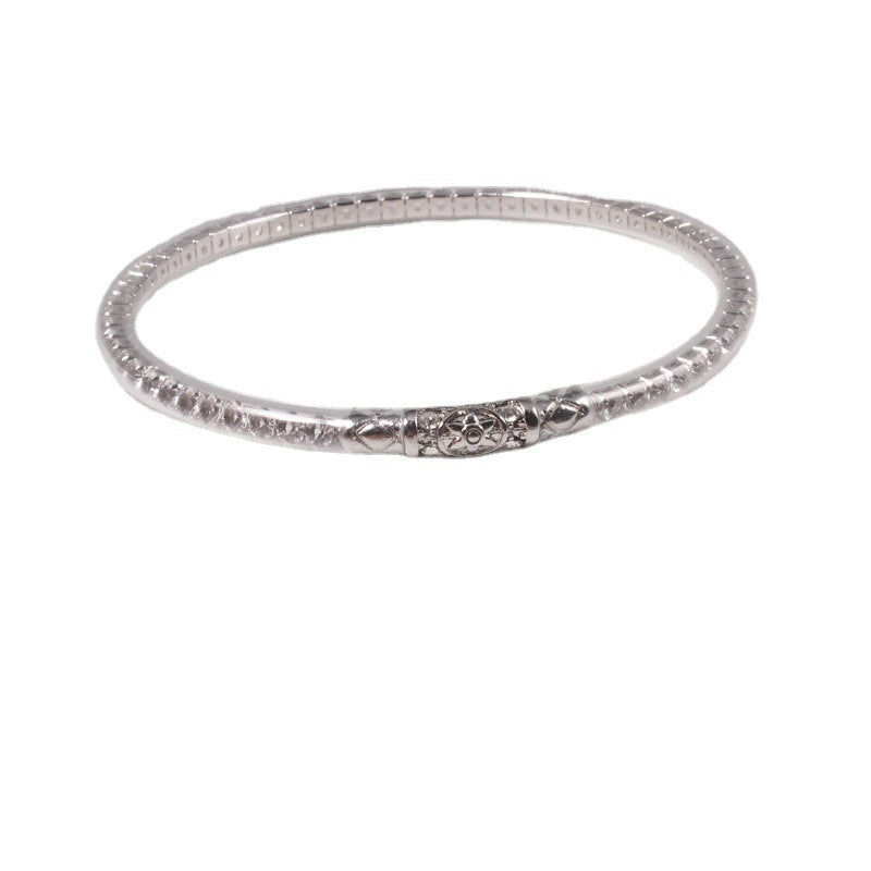 Retro Round Flower Silicone Buddhist Bangle with Hexagram Charm