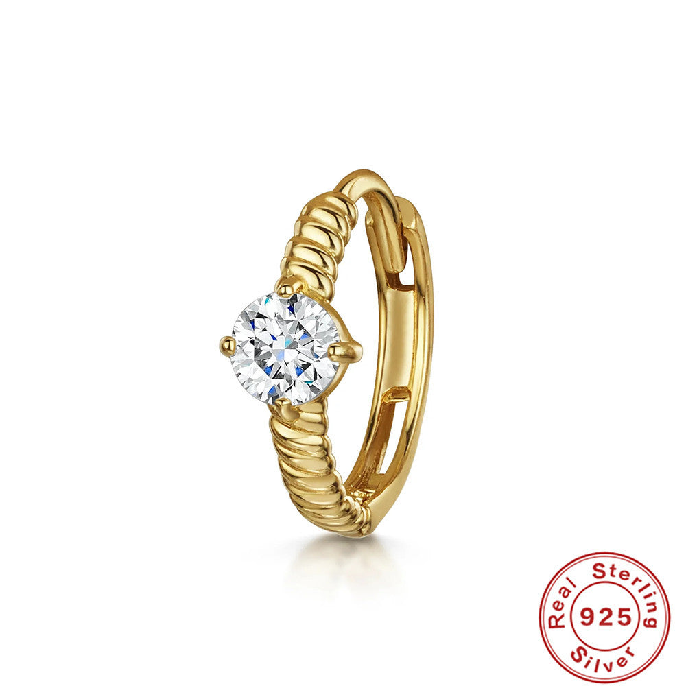 Retro Sterling Silver Zircon Inlay Hoop Earrings