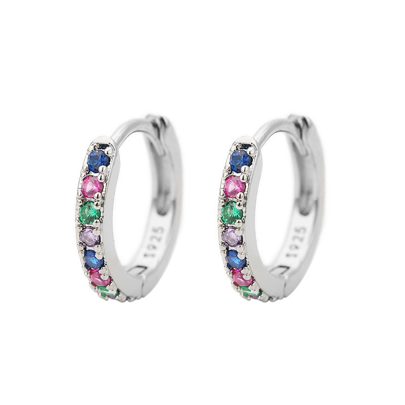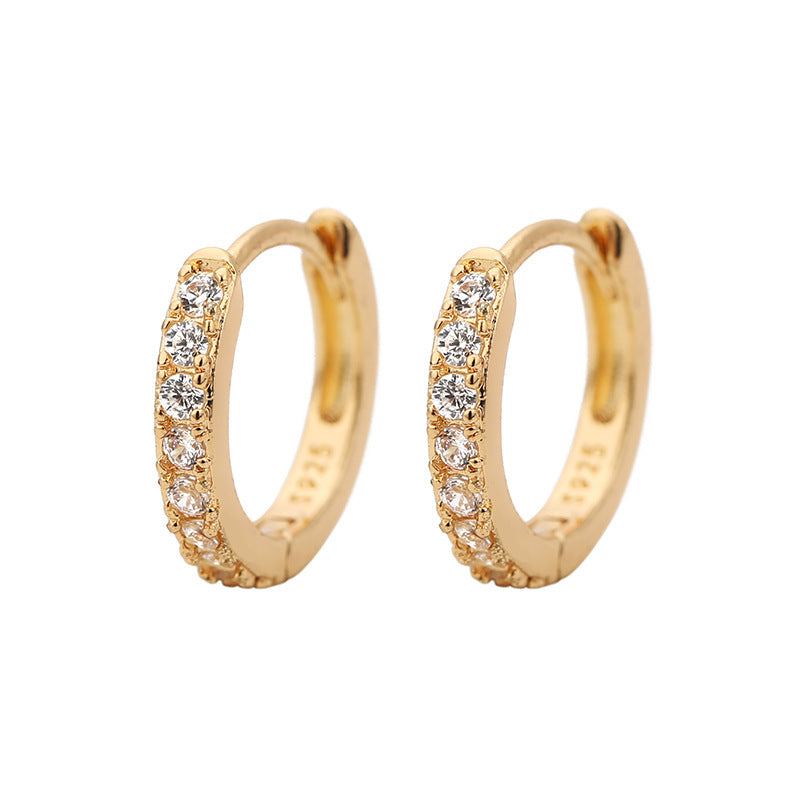 Retro Minimalist Rhinestone Inlay Round Metal Hoop Earrings for Women