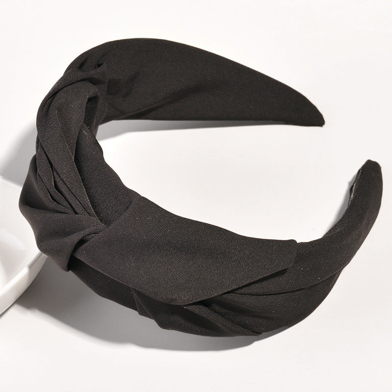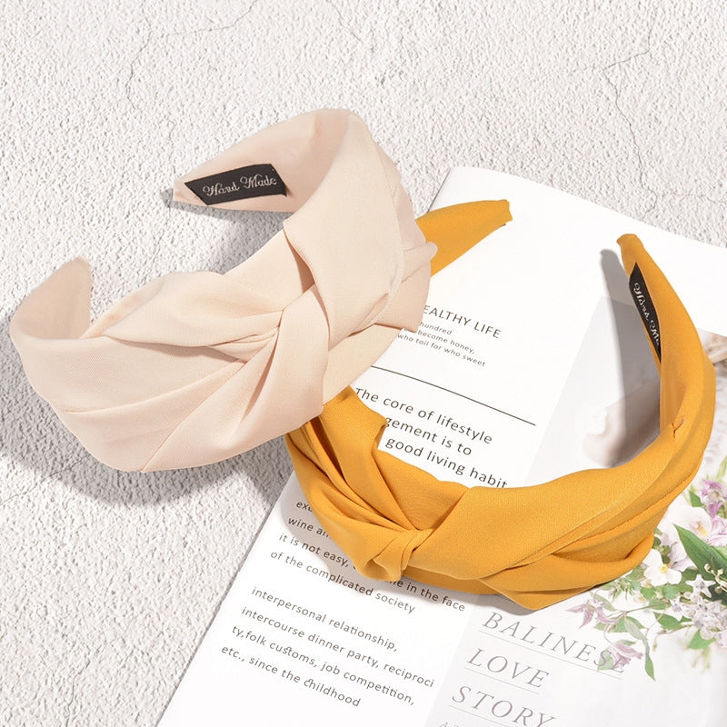 Retro Knotted Fabric Wide Headband - Fashion Solid Color Hair Accessory