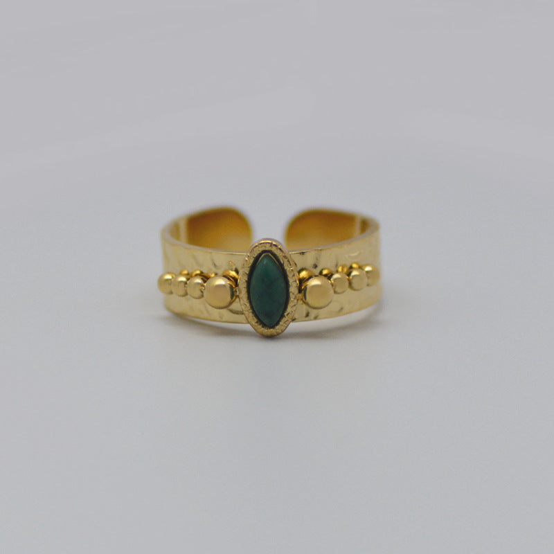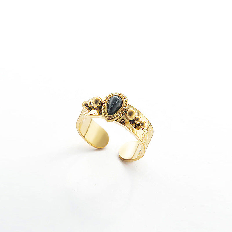 Retro Adjustable Black Turquoise Gold-Plated Stainless Steel Ring