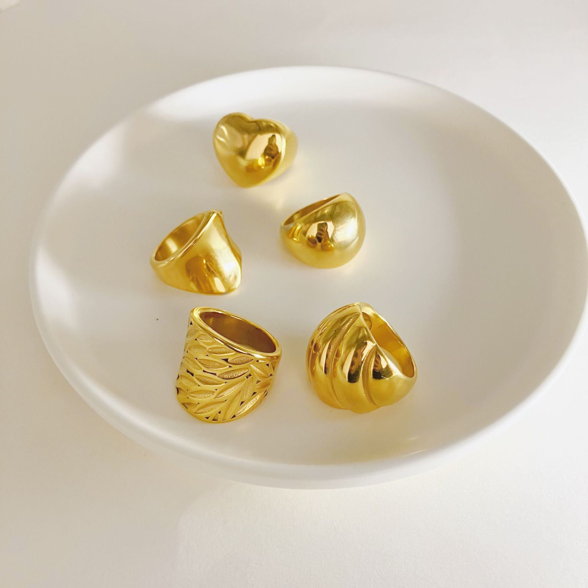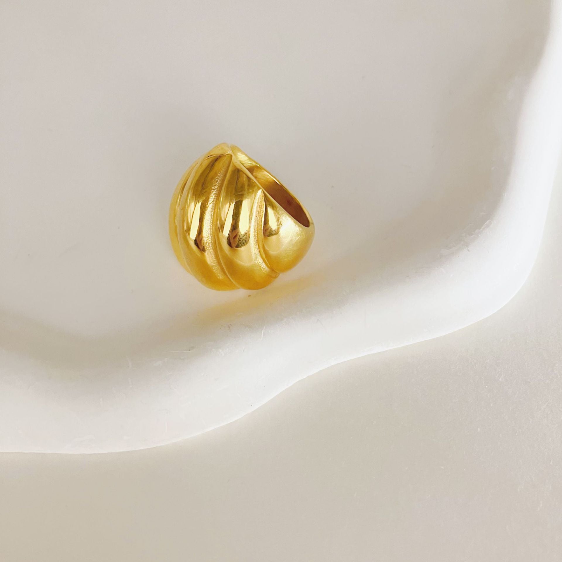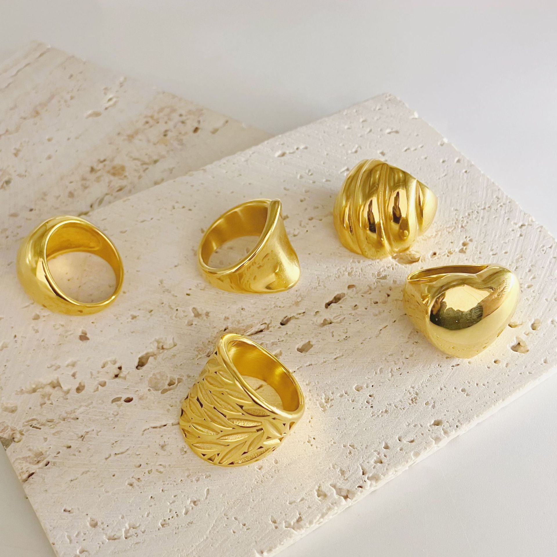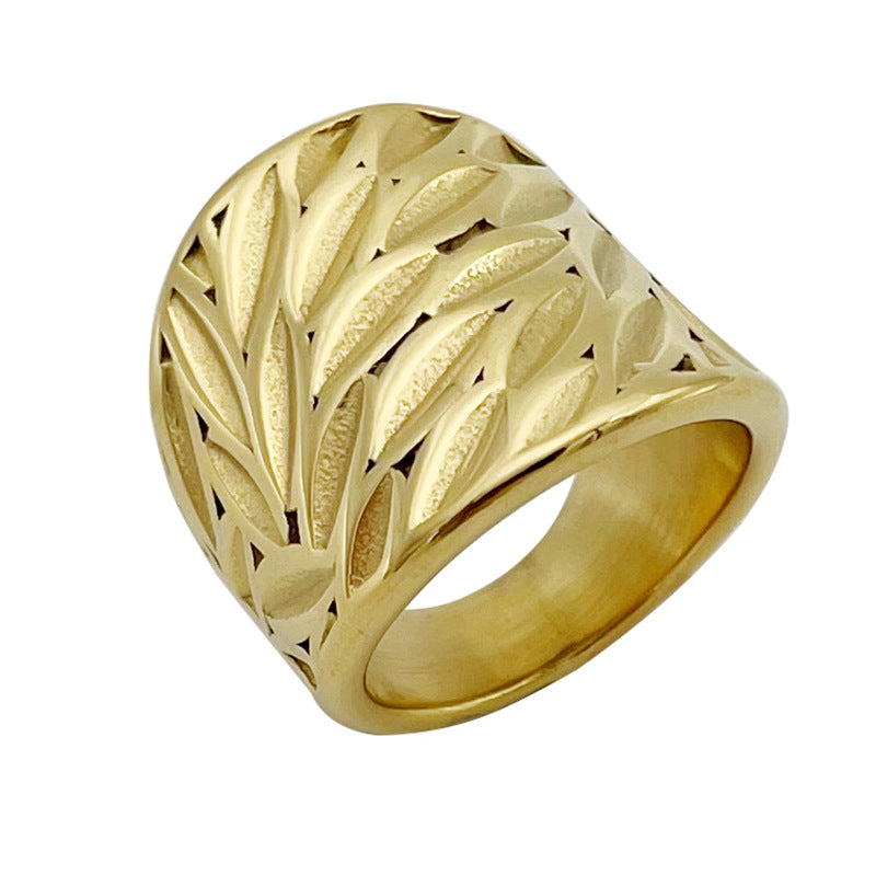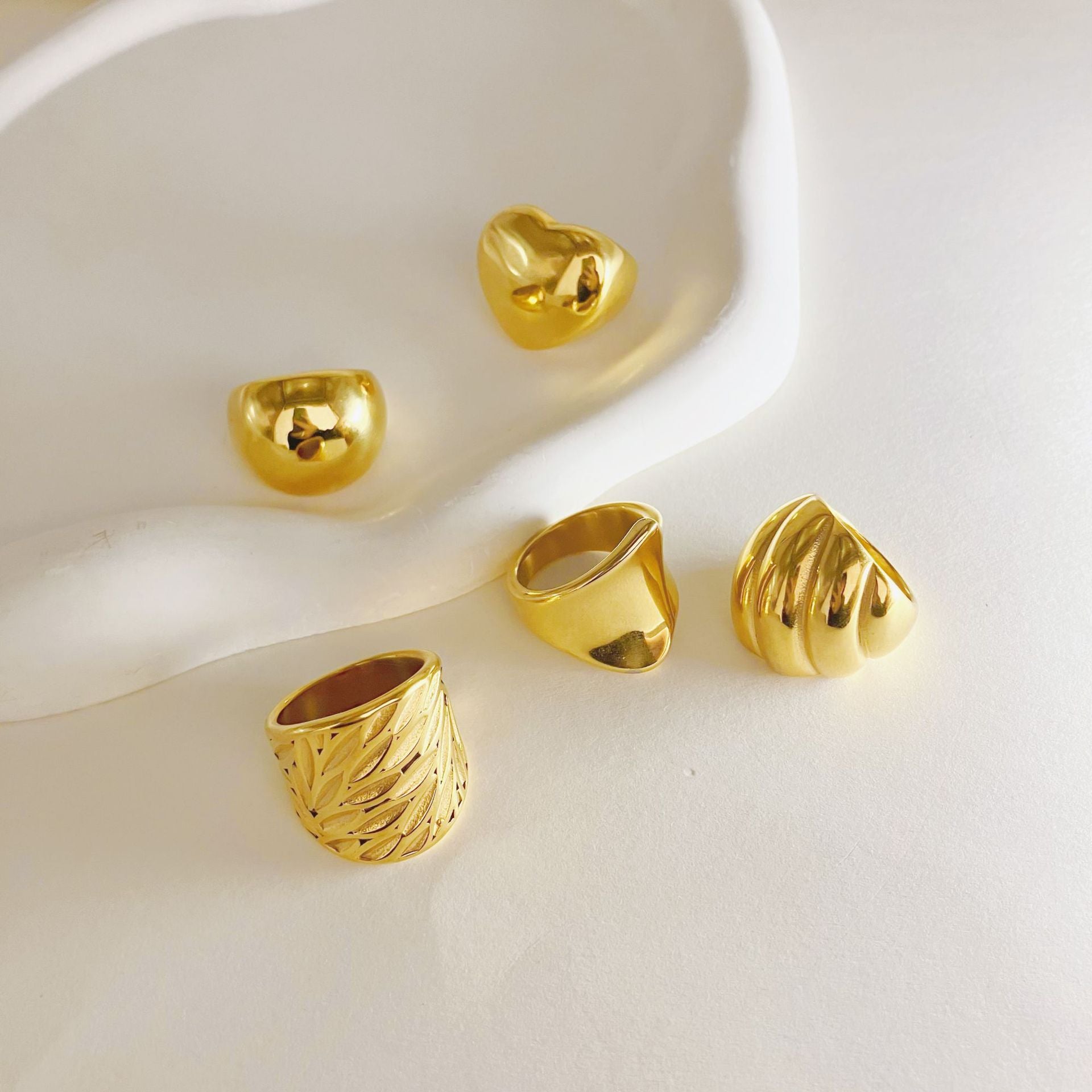 Retro Stripe Heart Shape 14k Gold Plated Geometric Stainless Steel Ring