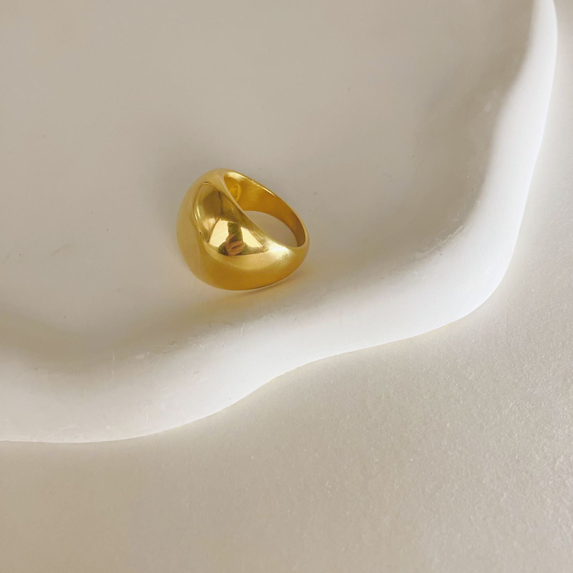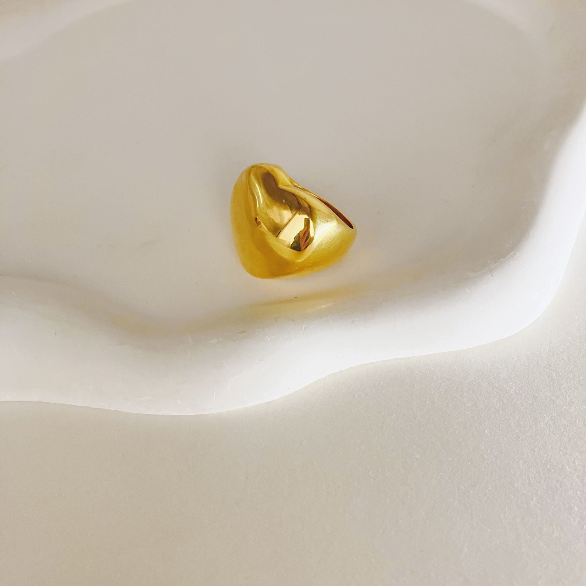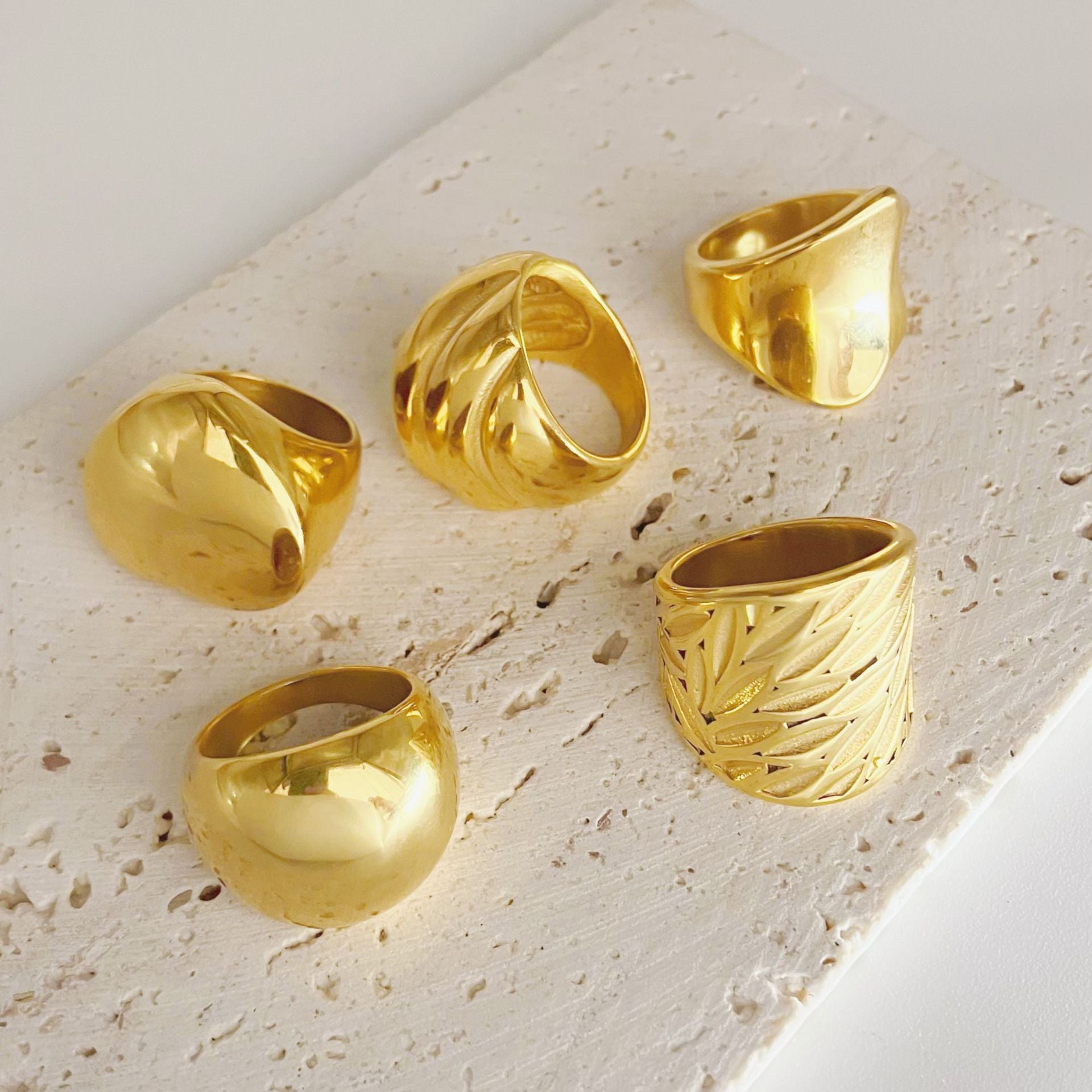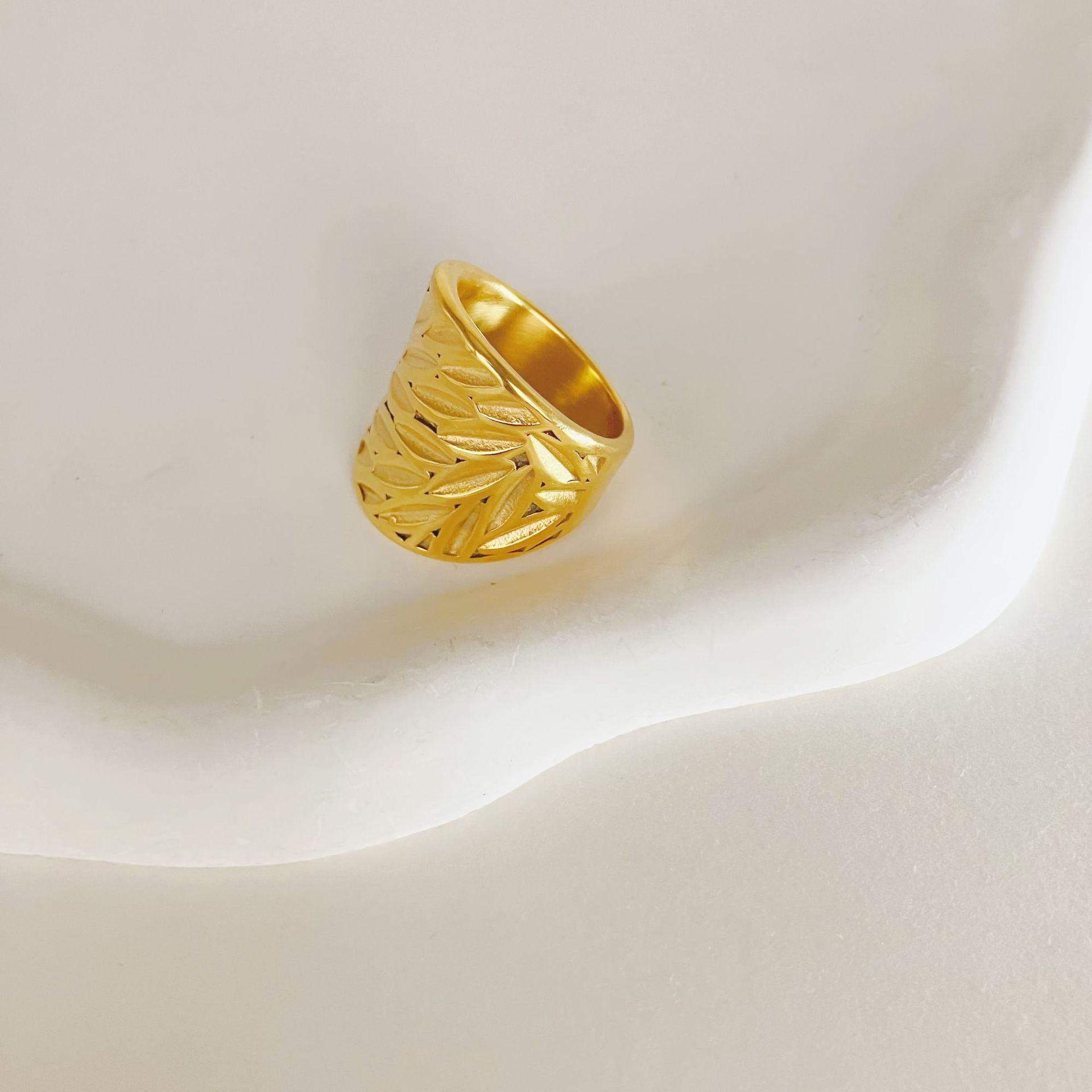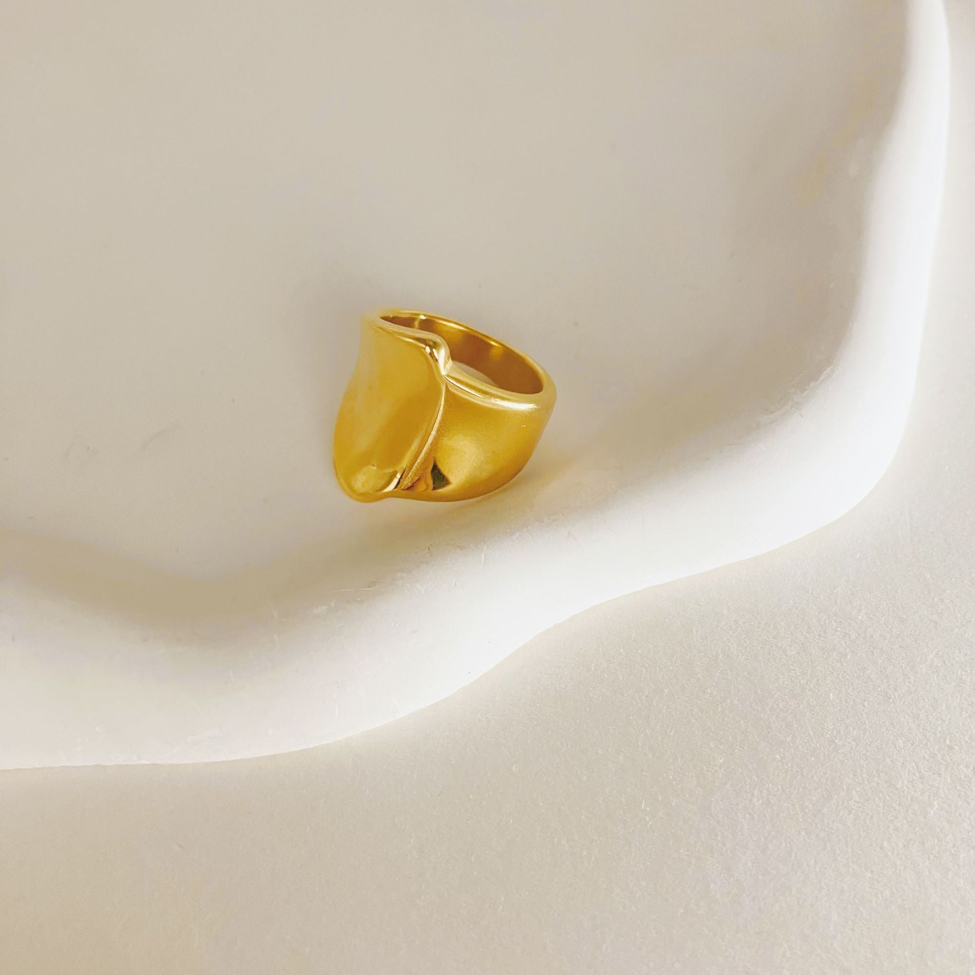 Retro Stripe Heart Shape 14k Gold Plated Geometric Stainless Steel Ring