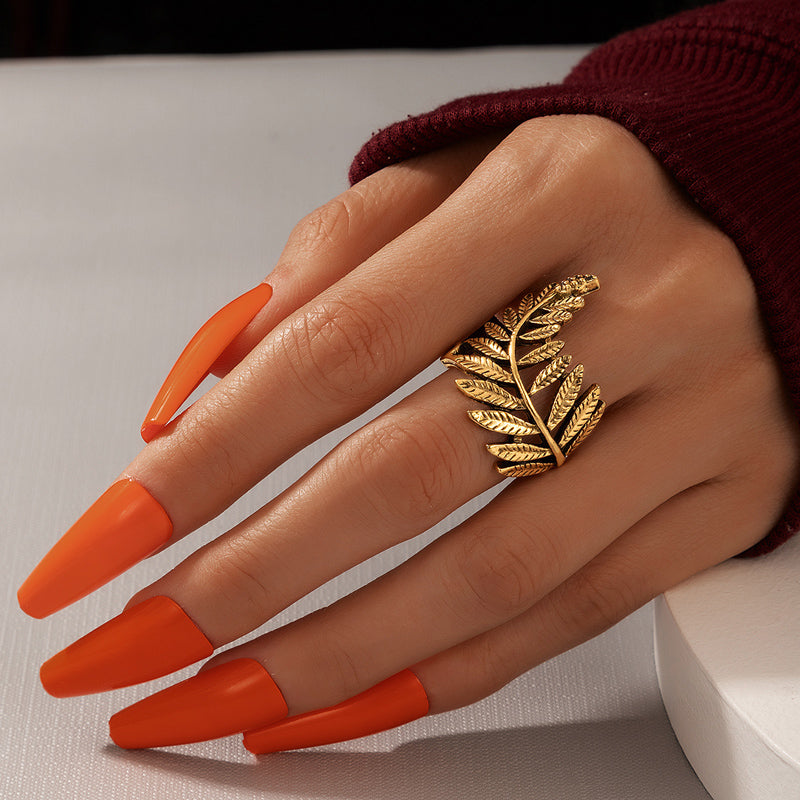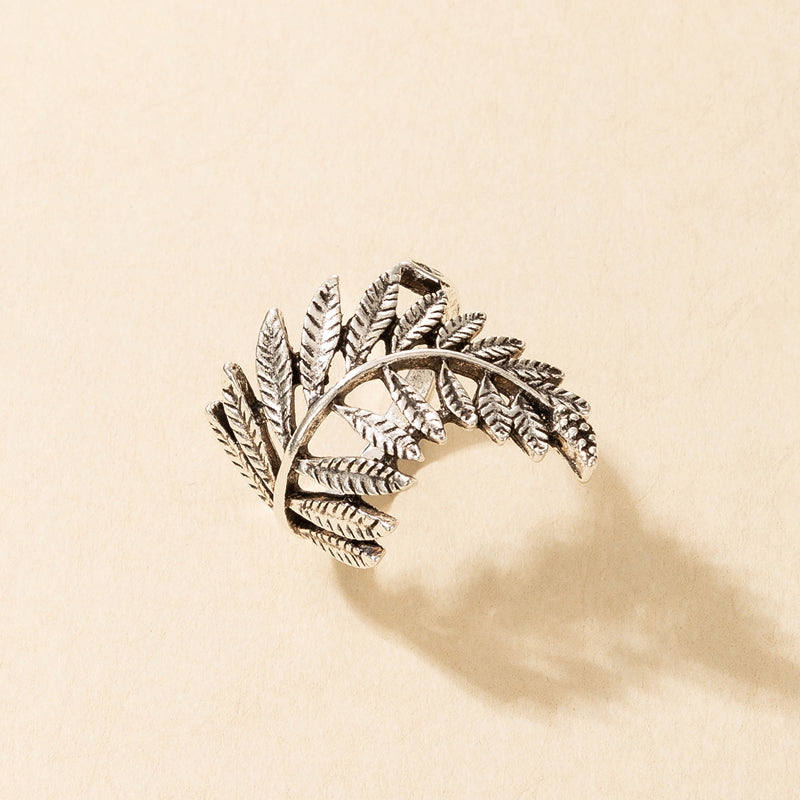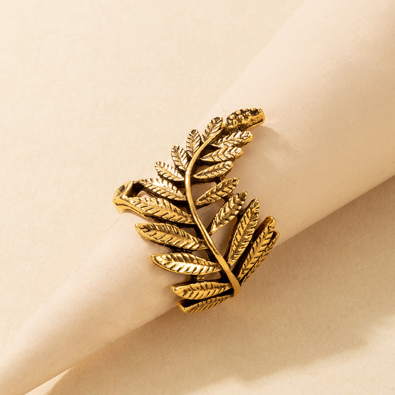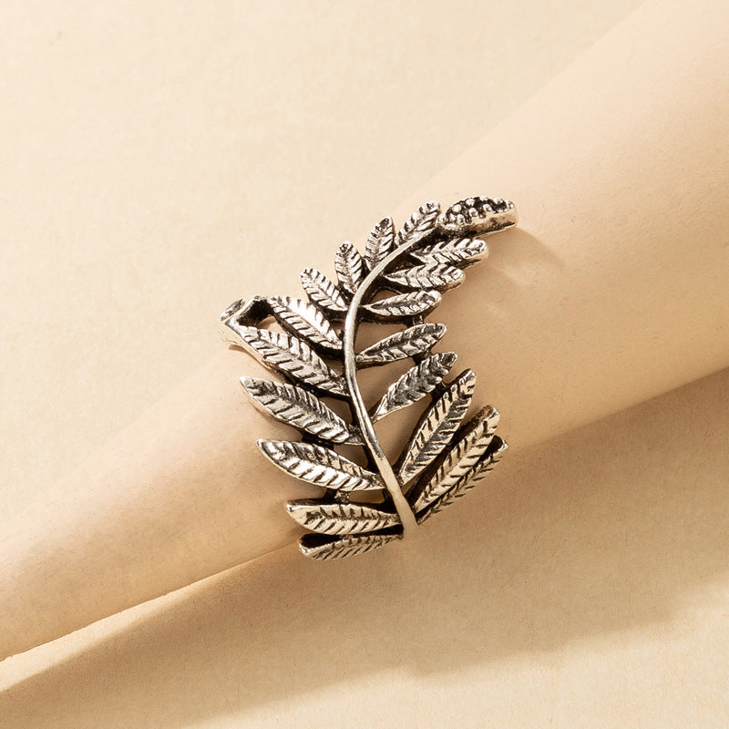Retro Bohemian Leaf Feather Mesh Ring for Women