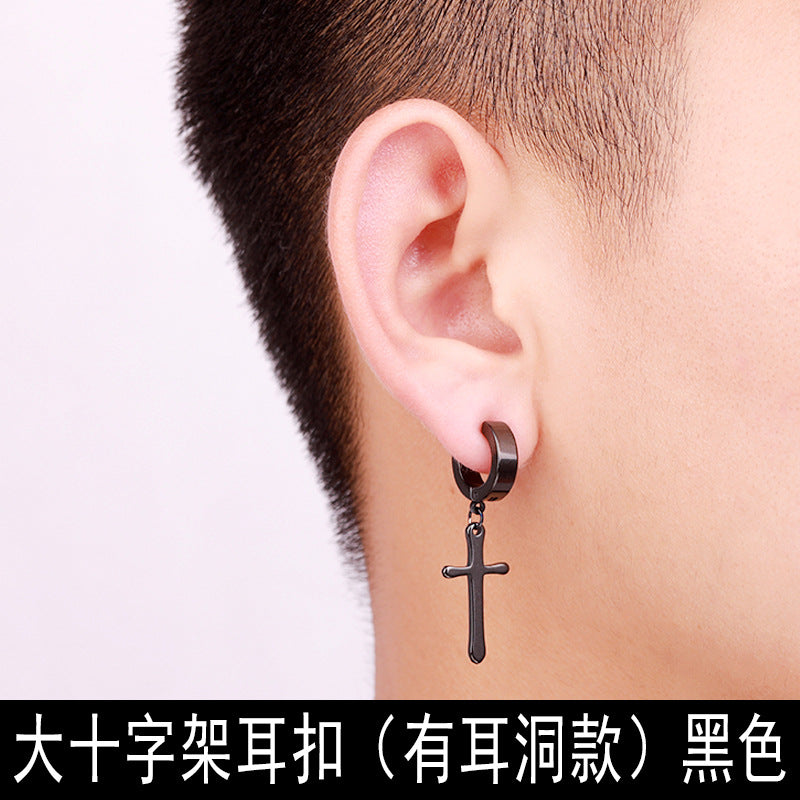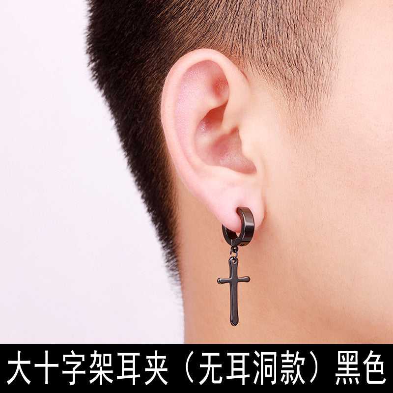 Retro Titanium Steel Cross Clip-On Earrings for Men