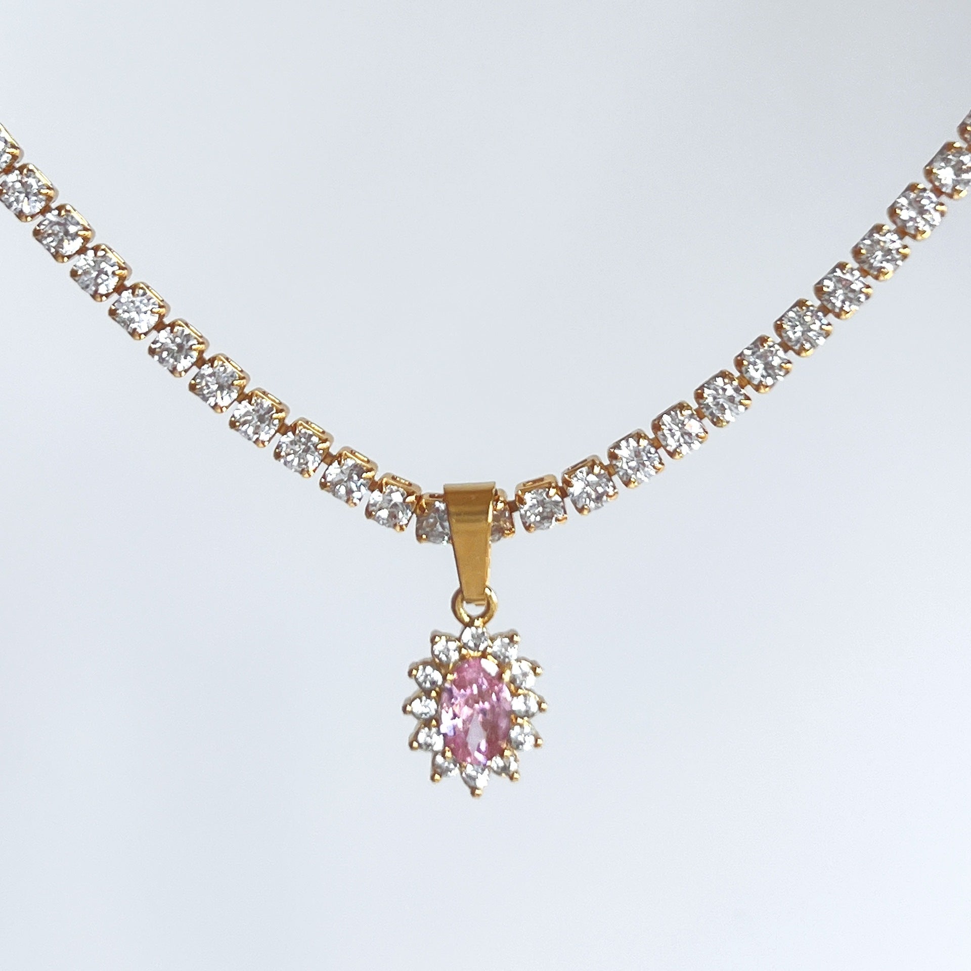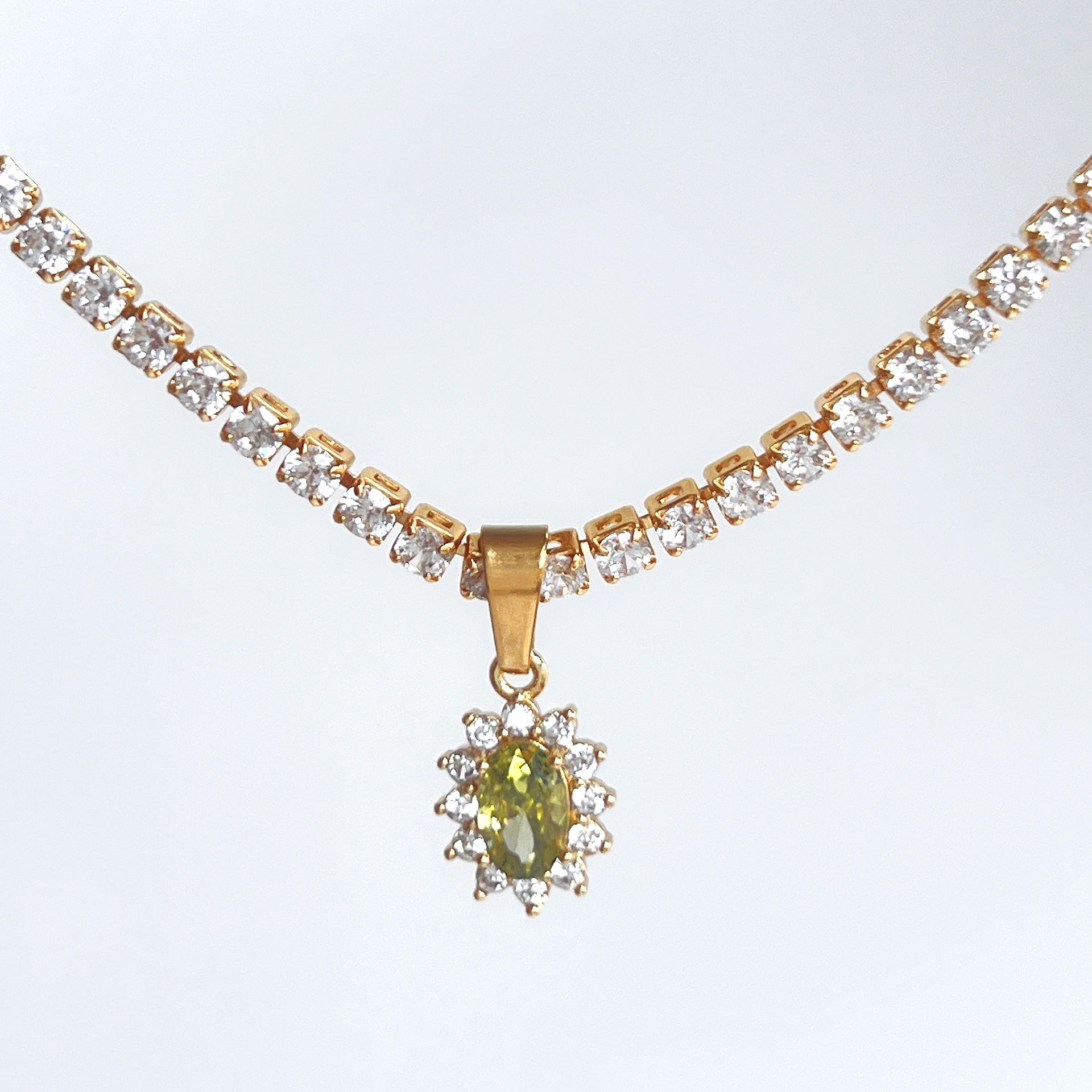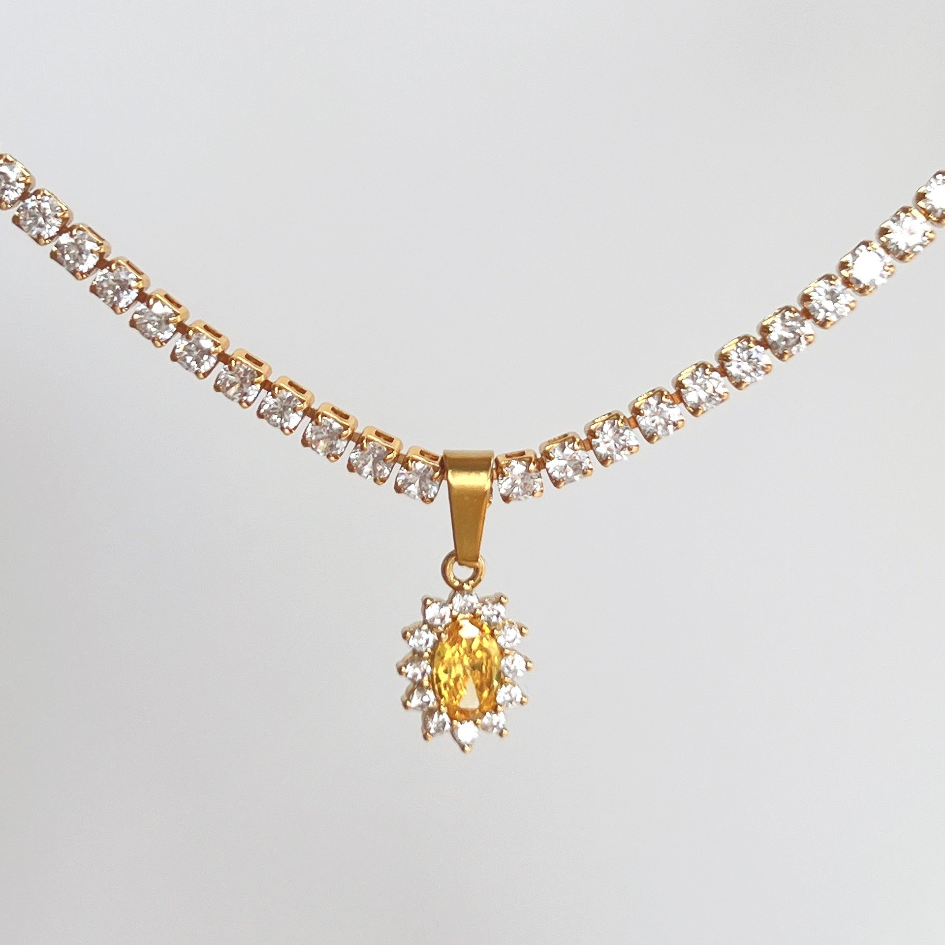Retro Oval Water Drop Zircon 18k Gold Plated Pendant Necklace