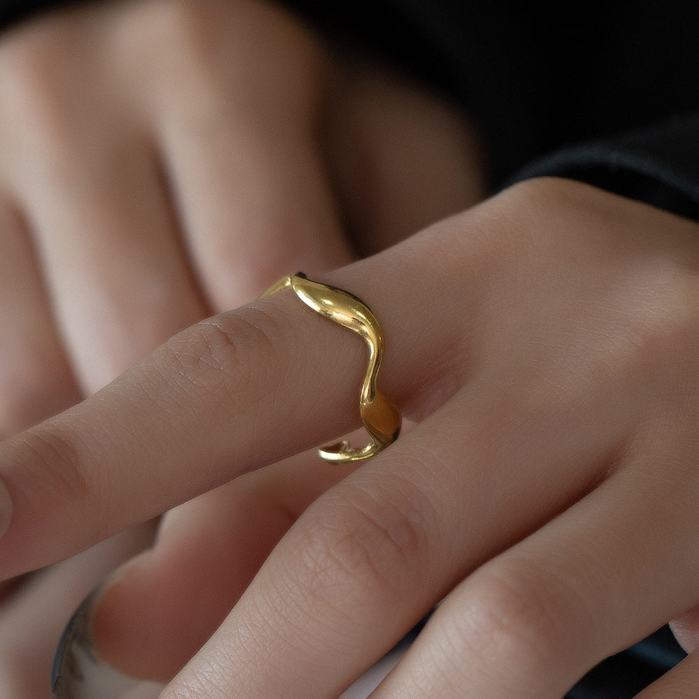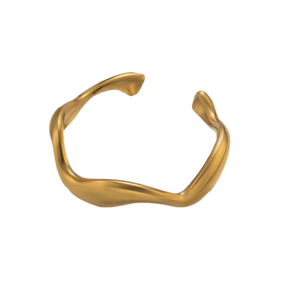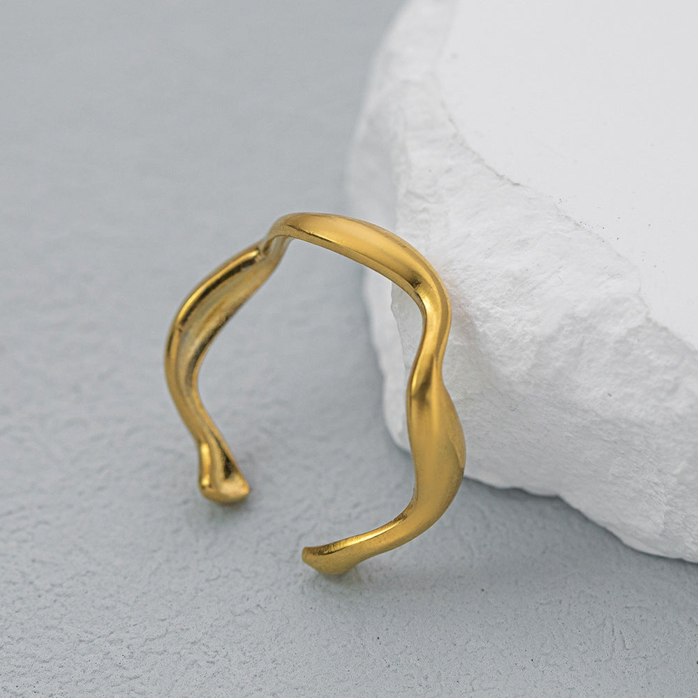 Retro Minimalist 18k Gold Plated Titanium Steel Wave Ring