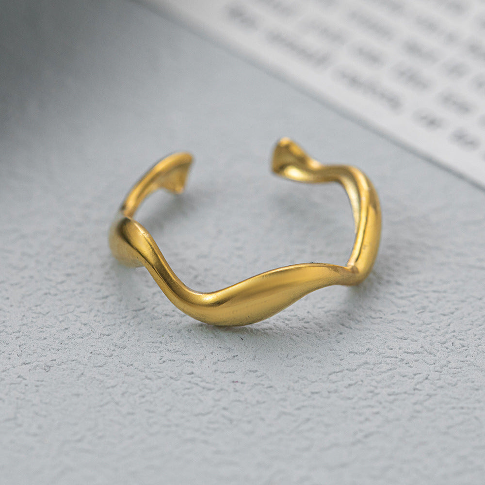 Retro Minimalist 18k Gold Plated Titanium Steel Wave Ring