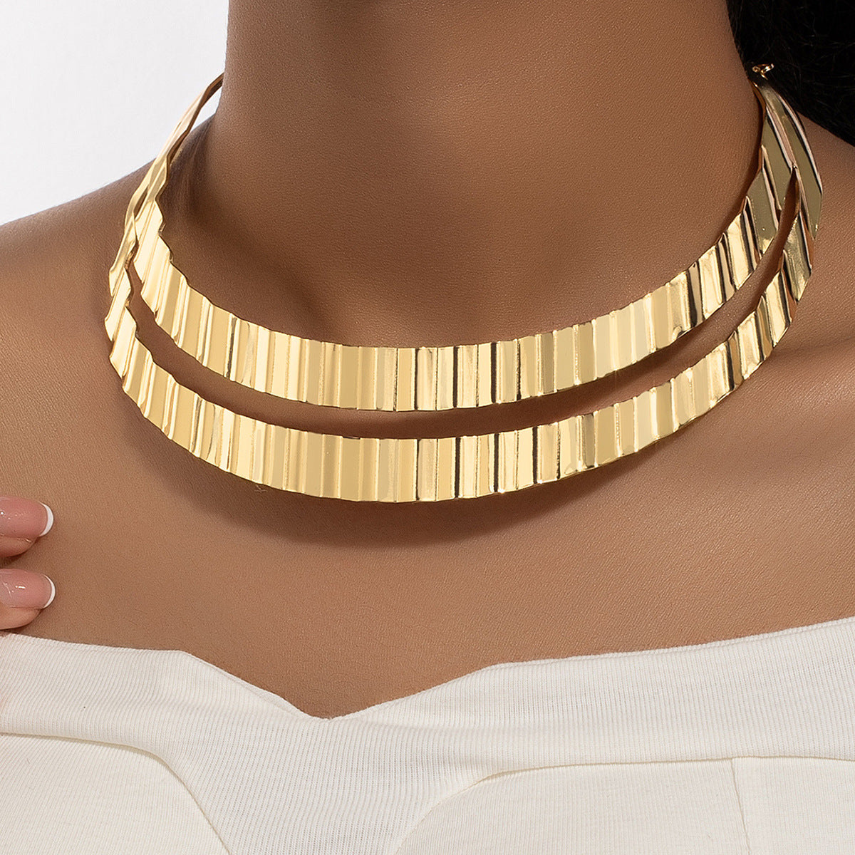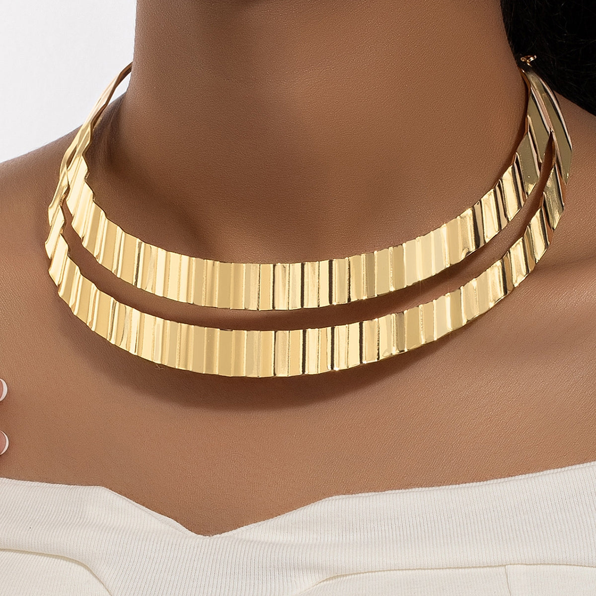 Roman Style Geometric Metal Double Layer Women's Choker Necklace