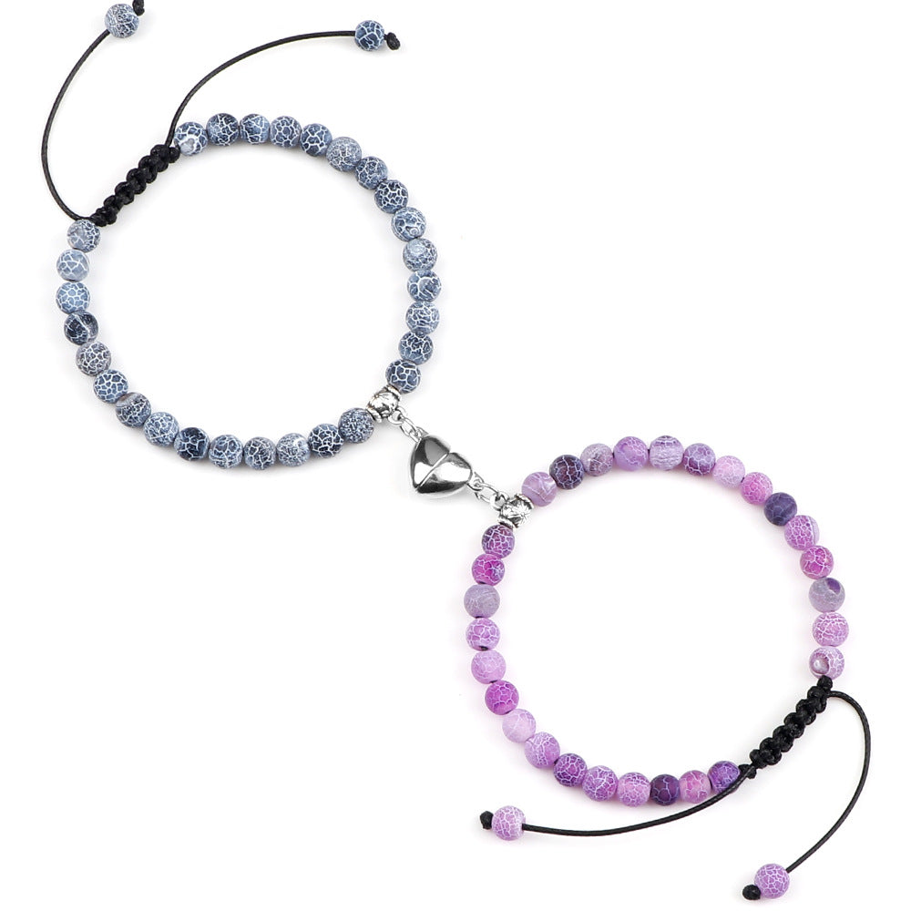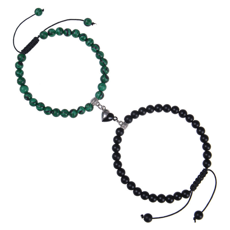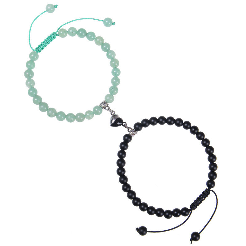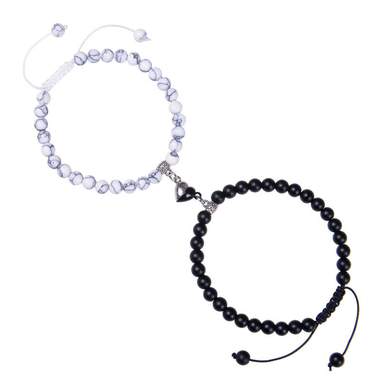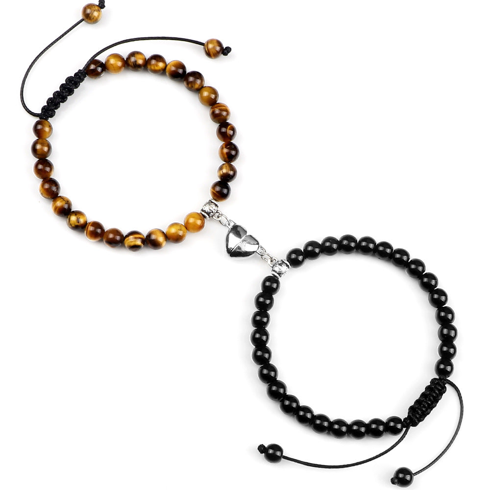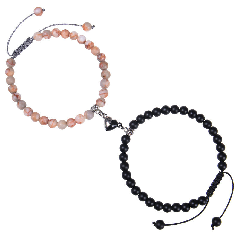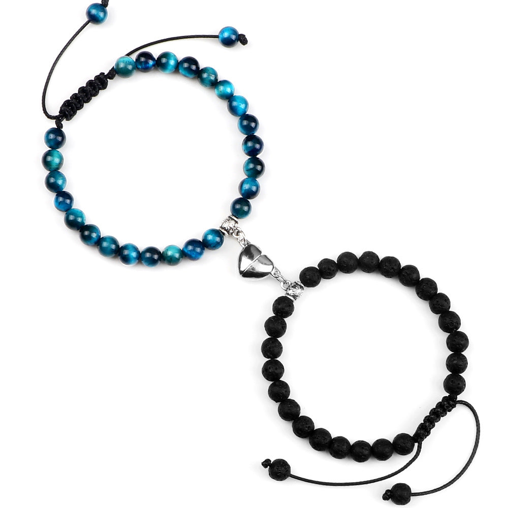 Romantic Heart Shape Natural Stone Couple Bracelets with Magnetic Clasp