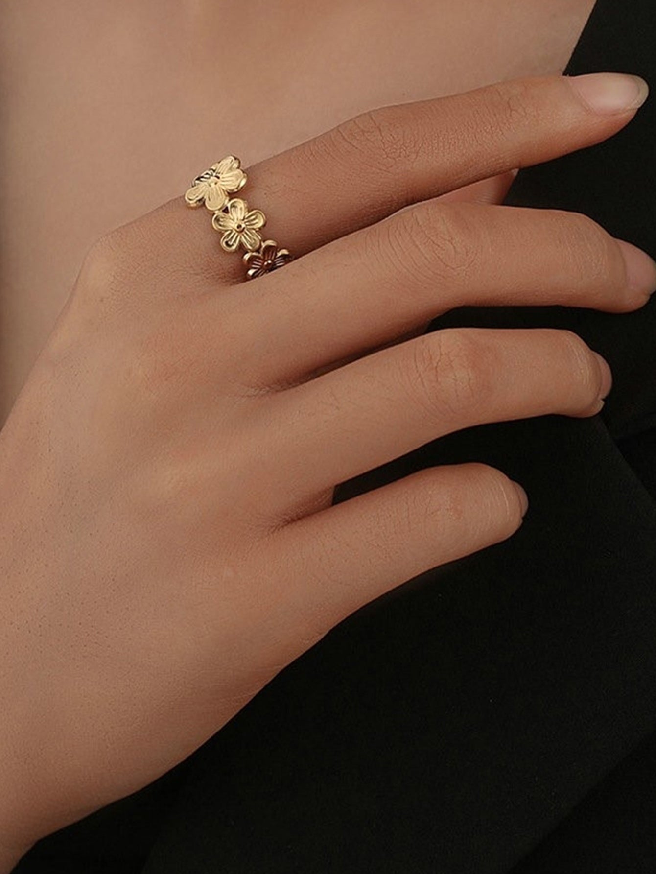 European Style Flower Adjustable Open Ring - 18K Gold Plated Stainless Steel Fashion Jewelry