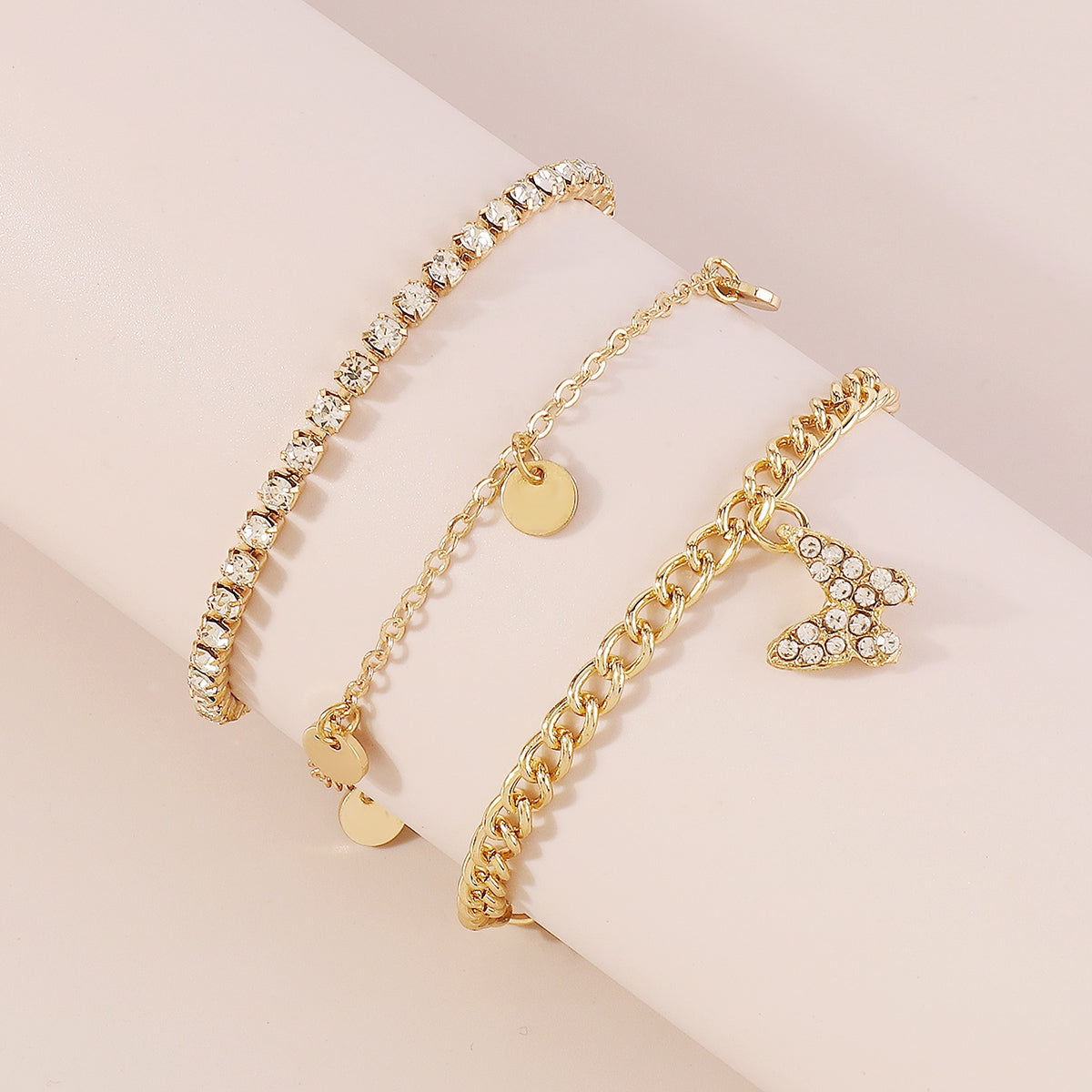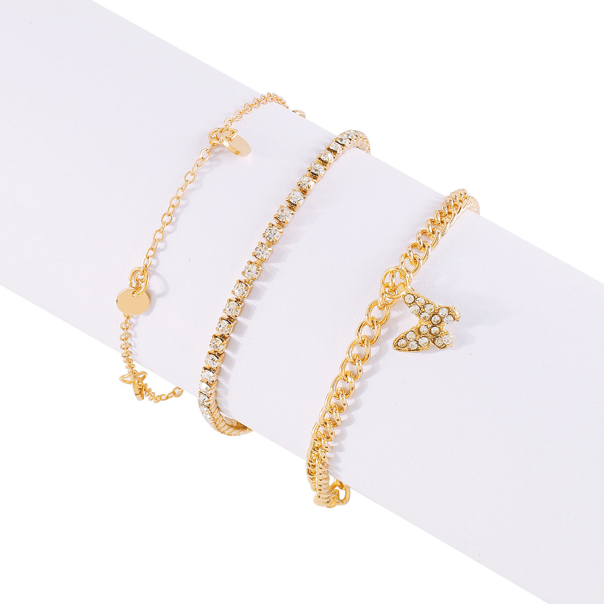 Sexy Beach Shiny Butterfly Geometric Alloy Anklet Set