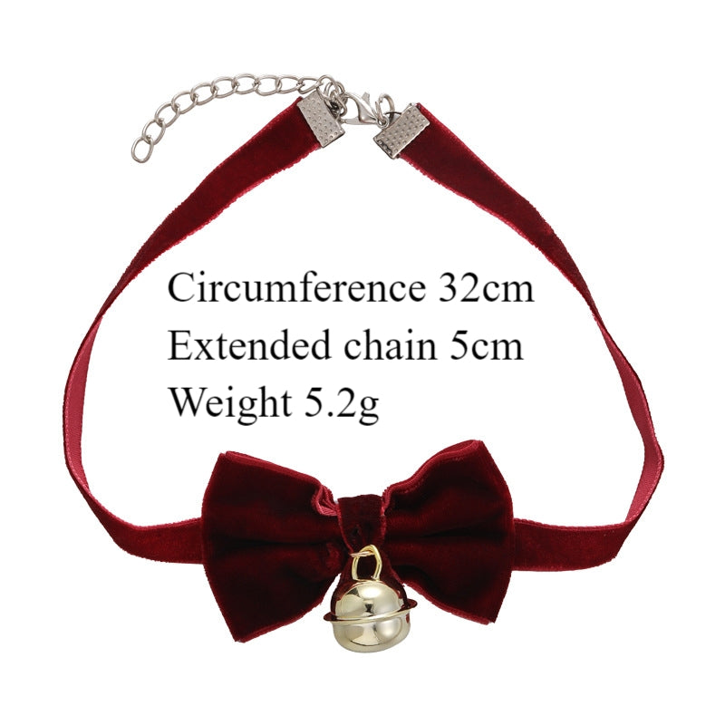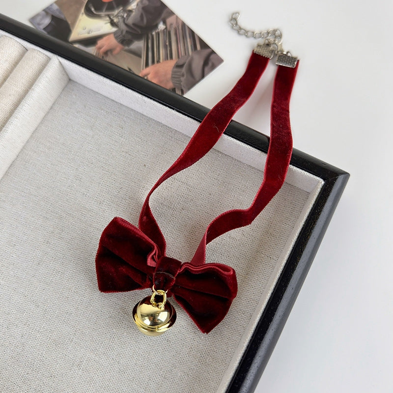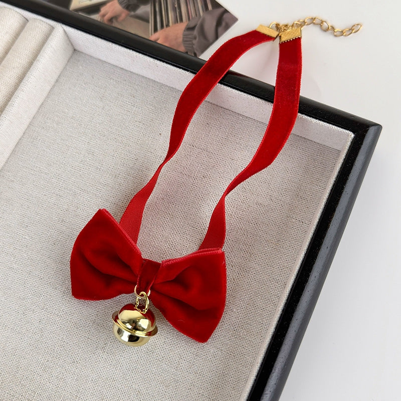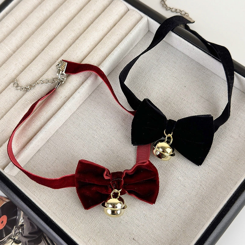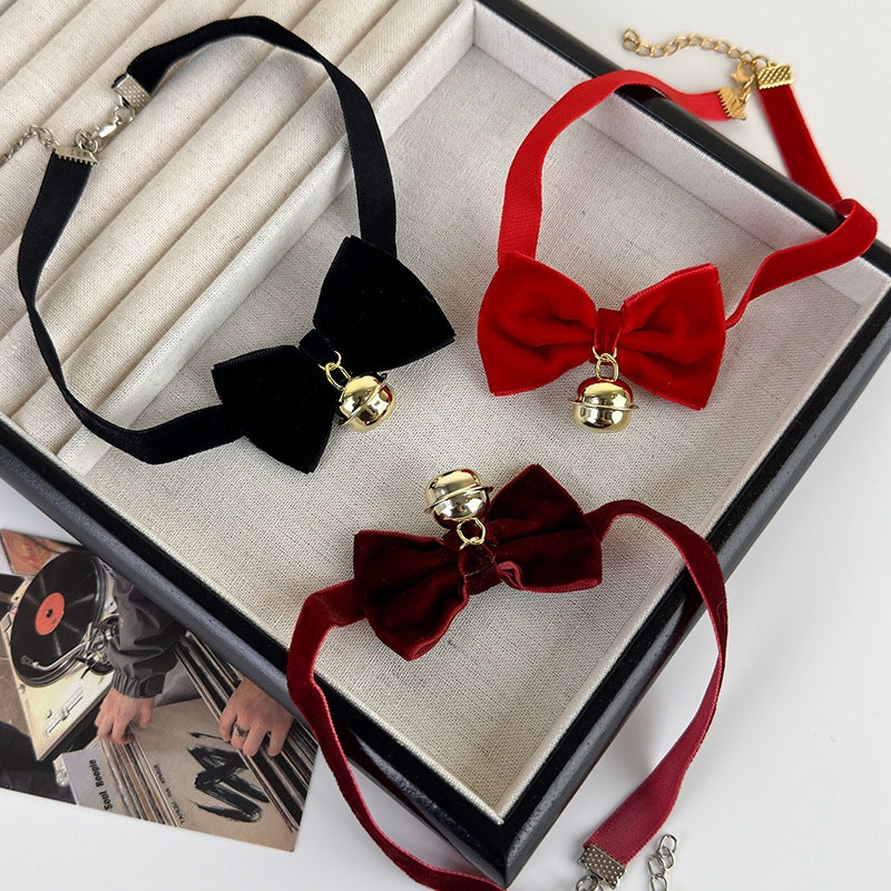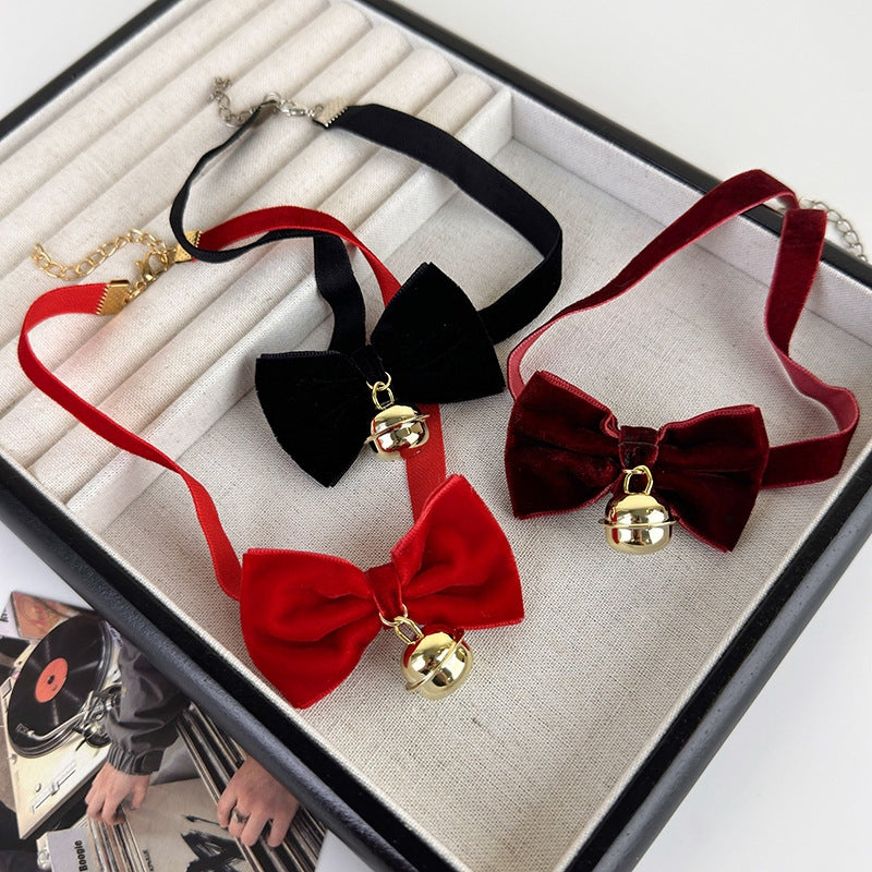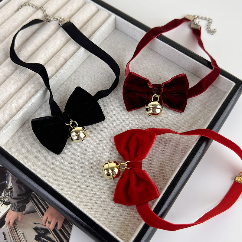 Elegant Velvet Bow Knot Choker Necklace with Bell Charm