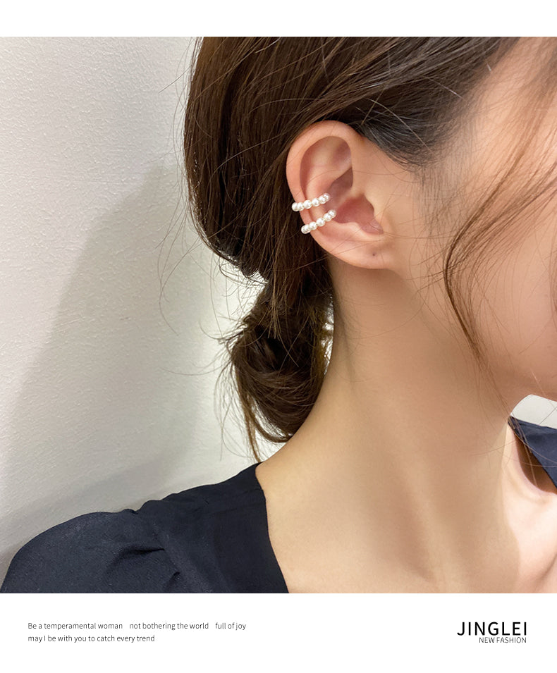 Simple C-Shaped Pearl Ear Cuff Clip-On Earrings